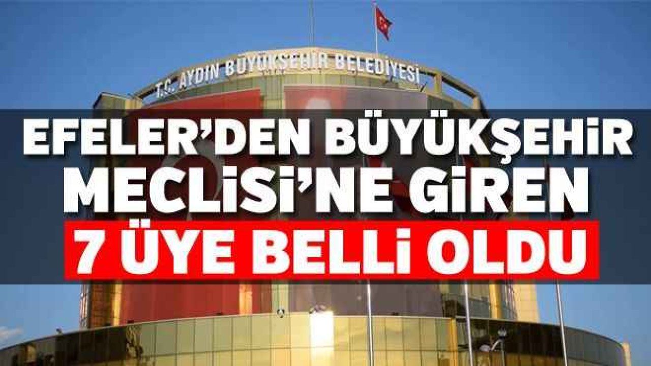 Efeler Belediye Meclisi’ne seçilen 37 üye arasından Aydın Büyükşehir Belediye Meclisi’ne seçilen 7 kişi belirlendi. Efeler Belediye Başkanı seçilen Mehmet Fatih Atay’ın doğal üye olduğu Büyükşehir Belediye Meclisi’ne Millet İttifakı’ndan Adnan Bosnalı, Barış Altıntaş, Ayşe Özdemir, Semra Yücel ve İlhan Günendi seçilirken, Cumhur İttifakı’nı ise mecliste Efeler’den Neşe Menderes ile Kasım Payza temsil edecek. Yedek üyeler Millet İttifakı’ndan Yüksel Macaroğlu, Ahmet Kızılkaya, Oktay Toros ve Ahmet Mithat Taşdan, Cumhur İttifakı’ndan ise İsmail Hakkı Eser, Savaş Akçöltekin ve Duygu Göğde oldu.