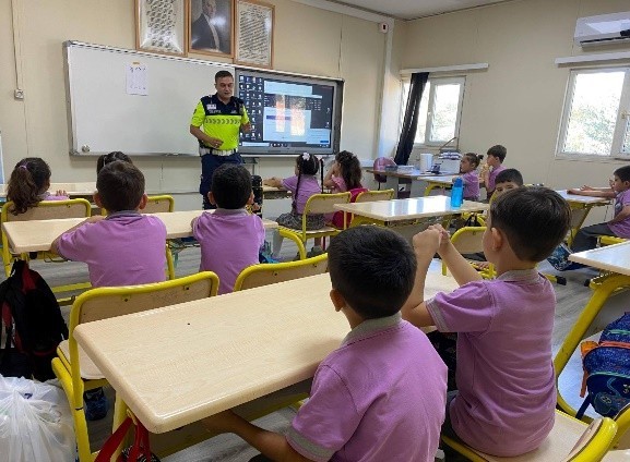 Aydın İl Jandarma Komutanlığı Efeler İlçe Jandarma Komutanlığınca İçişleri Bakanlığı’nın "2024-2025 Öğretim yılında Alınacak Trafik Tedbirleri" genelgesi kapsamında Efeler Yılmazköy İlkokulu ve Anaokulunda öğrencilere yönelik eğitim faaliyeti gerçekleştirildi.