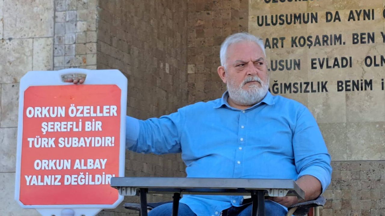 Eylem esnasında Emekli Albay Yamaç yanında “Orkun Özeller şerefli bir Türk subayıdır. Orkun albay yalnız değildir” dövizi açtı. Eylemle ilgili herhangi bir açıklama yapmayan Yamaç’ın yanında getirdiği bir kitabı okuduğu görüldü.