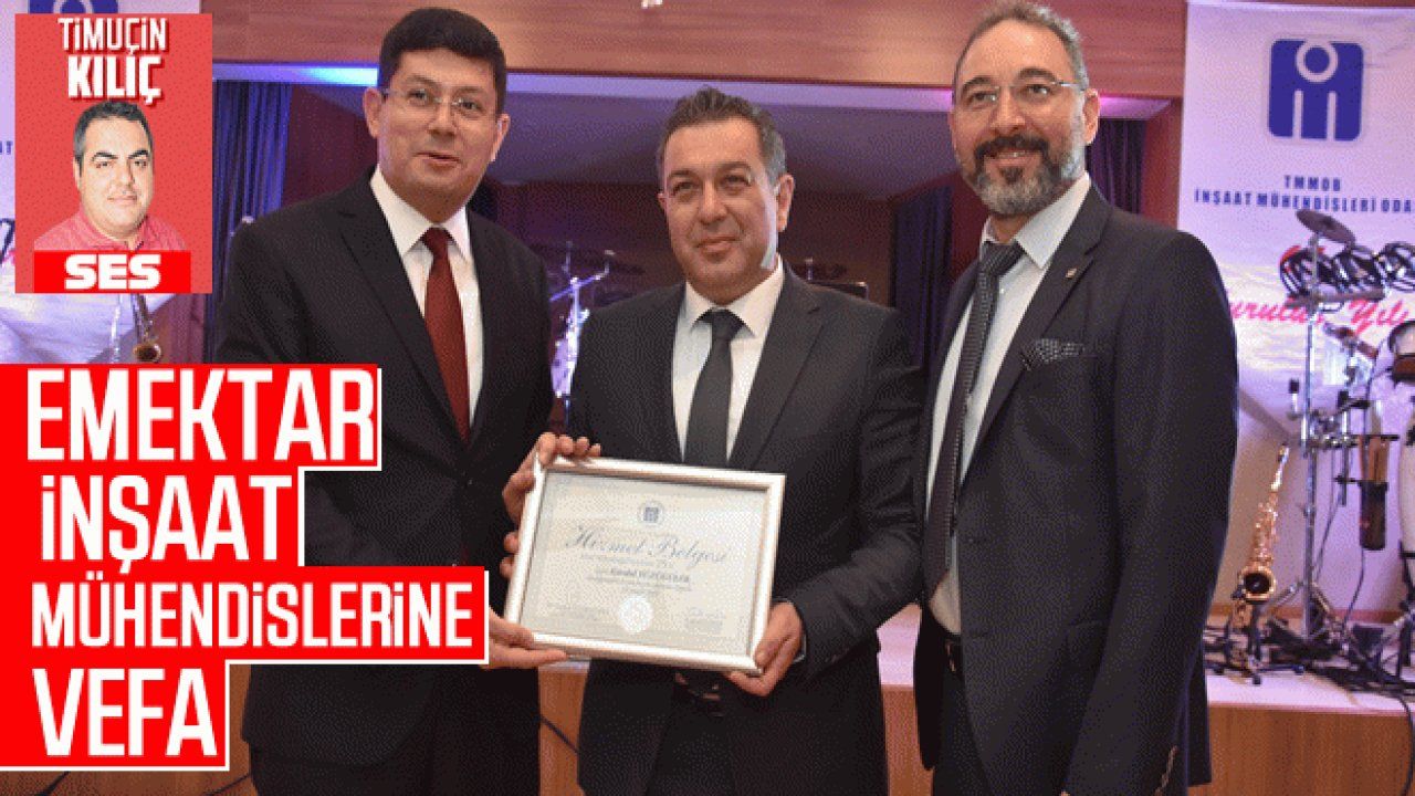 İnşaat mühendisliğinin kurucu mühendislik alanlarının başında yer aldığına dikkat çeken İMO Aydın Şube Başkanı Gürkan Yenipazarlı; “Bizler, halkımızın güven ve huzur içerisinde yaşaması için can ve mal güvenliğini koruyan güvenli yapılar üretmekle sorumluyuz. Maalesef ki ülkemizde mühendislik hizmeti almamış ruhsatsız yapıların kanunlarla ruhsatlandırıldığı bir tutum sergilenmektedir. Deprem gerçeği unutulmadan bu tutumdan hızlı bir şekilde vazgeçilmelidir. İnşaat mühendisliği, sadece depremler olduğunda gündeme gelen bir meslek olmaktan çıkıp, her zaman gerekliliği ve önemi ortaya konan bir meslek olmalıdır” dedi. Yapılan konuşmaların ardından mesleğinde 40’ıncı yılını dolduran Kadir Ateş, Kazım Zeyrek, Fevzi Koçak M. Ali Şekerler, Mehmet Özçakır, Bekir Aşcı, Mahmut Özer, Mehmet Erdem, Yaşar Barış, Mustafa Selçuk ve Tayyar Şahin’e plaket ve onur belgeleri aileleri tarafından verildi. Mesleğinde 25. yılını dolduran Gürdal Yüzügüler, Tufan Öz, Nail Özdağ ve Cengiz Öztürk plaket ve Onur belgelerini Nazilli Belediye Başkanı Kürşat Engin Özcan’ın elinden aldı.