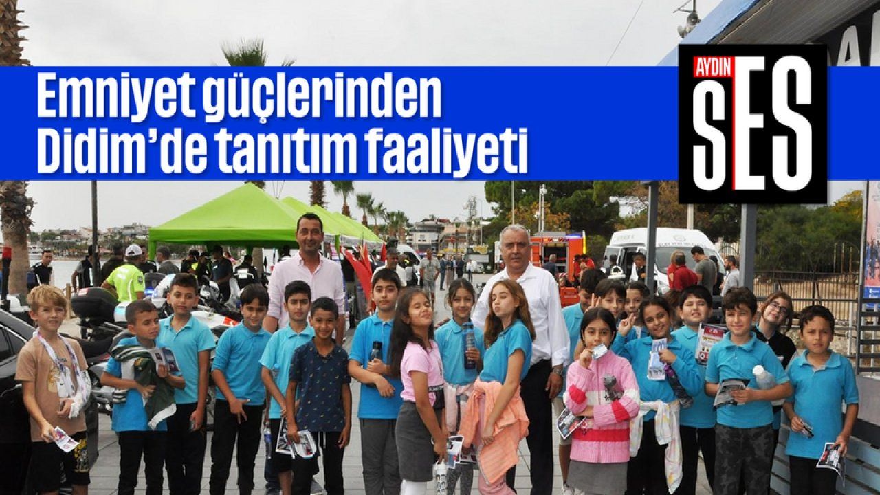 Aydın İl Emniyet ve Didim İlçe Emniyet Müdürlüğü Cumhuriyetimizin kuruluşunun 100. yılı dolayısıyla Didim’de tanıtıcı faaliyet gerçekleştirdi. Altınkum Yalı Caddesinde gerçekleşen etkinliğe İlçe Kaymakamı Can Kazım Kuruca, Didim İlçe Emniyet Müdürü Yunus Dinç, İlçe Milli Eğitim Müdürü Ş.Sait Üstündağ ve öğrenciler katıldı. Etkinlik kapsamında öğrencilerde düzenlenen gezi kapsamında Emniyet tarafından açılan stantları gezerek bilgiler aldı. İlçe Kaymakamı Can Kazım Kuruca da stantları gezerek hem bilgiler aldı; hem de öğrencilerle sohbet etti. Etkinlikte Emniyet müdürlüğü ekiplerince tarafından kullanılan araçlar, silah ve teçhizatlar, arama kurtarma ekipmanlar yer aldı.