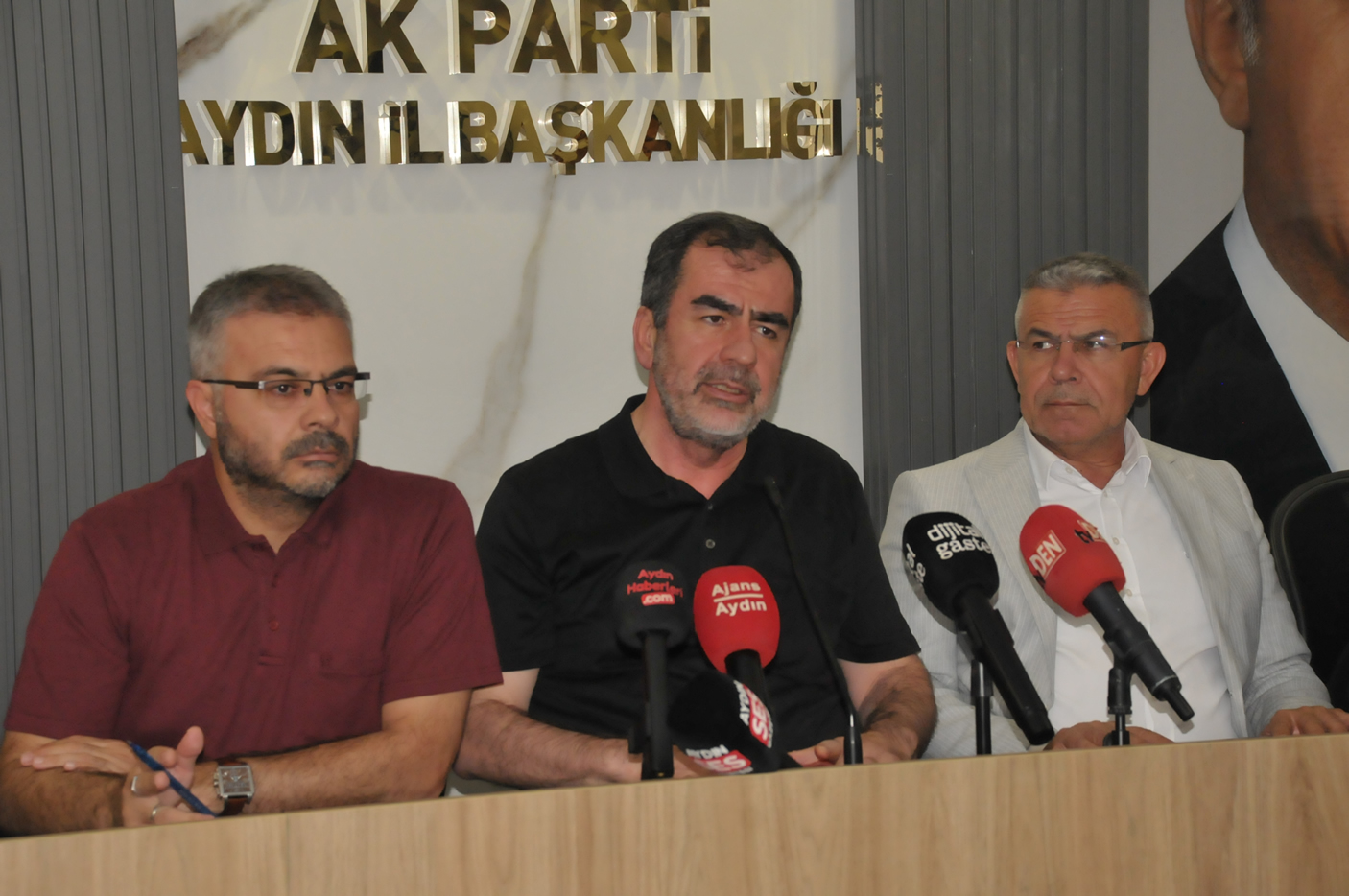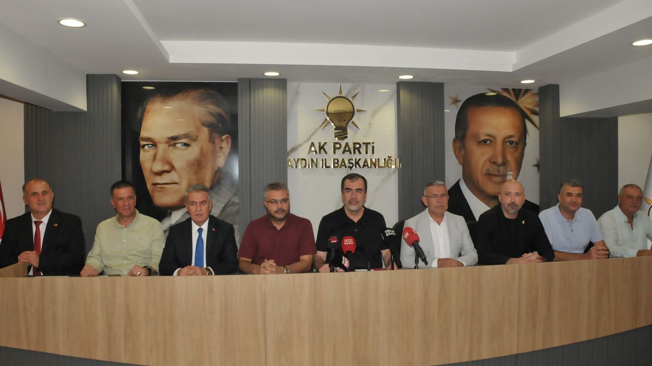 Aydın Büyükşehir Belediye Meclisi’nde dün yaşanan gerilimle ilgili AK Parti İl Başkanlığı’nda basın toplantısı düzenlendi. Toplantıya AK Parti Aydın Milletvekili Ömer Özmen, İl Başkanı Mehmet Erdem, Köşk Belediye Başkanı Nuri Güler, İncirliova Belediye Başkanı Aytekin Kaya, Buharkent Belediye Başkanı Mehmet Erol, Karpuzlu Belediye Başkanı Hilmi Dönmez, Söke Belediye Başkanı Mustafa İberya Arıkan, Sultanhisar Belediye Başkanı Osman Yıldırımkaya ve Yenipazar Belediye Başkanı Malik Ercan ile il ve ilçe yöneticileri katıldı.