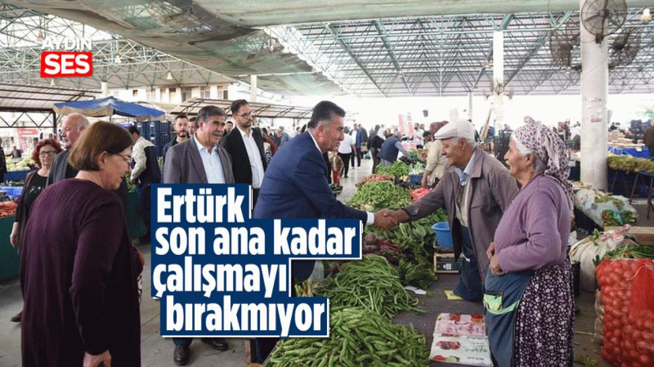 Sultanhisar Pazarı'nda halkla iç içe çalışmalarda bulunan Ahmet Ertürk vatandaşlar tarafından da sıcak ilgiyle karşılandı.