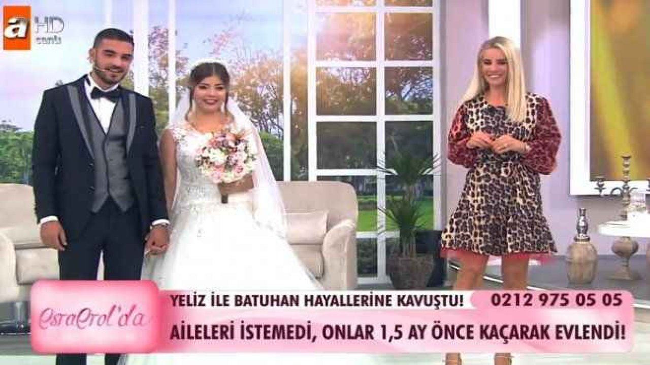 Bunun üzerine Yeliz Kartal, 1,5 ay önce evden kaçarak Batuhan Kartal ile resmi nikah kıydı. Sade bir törenle evlenerek gelinlik giyemeyen Yeliz Kartal, hayalini kurduğu beyaz gelinliği giyebilmek için ATV'de yayınlanan Esra Erol'un sunuculuğunu yaptığı programa başvurdu.