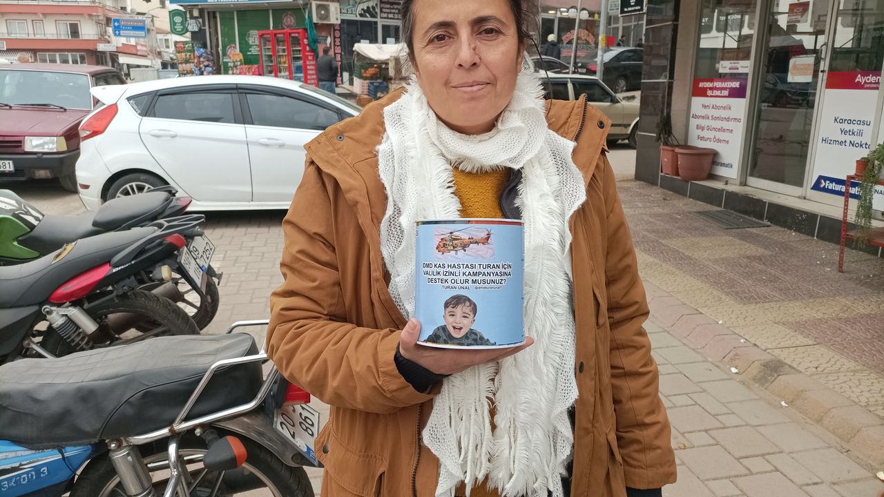 Kuyucak’ın Beşeylül Mahallesi’nde 21 yıldır kahvehane işleten 49 yaşındaki Ayşen Gül, torununun tedavisi için kentte sokak sokak dolaşıyor. Gül, “Torunumuzun 6 aylıkken sağlık durumundan şüphelendik. Yapılan tetkikler sonucunda DMD hastası olduğu belirlendi. Teşhis süreci oldukça uzun sürdü. Torunumun tedavisi için 4 yaşına gelmeden yurt dışından ilaç almamız gerekiyor. Eğer bu ilaç alınamazsa, torunumuzun 7-8 yaşlarında tekerlekli sandalye kullanacağı, 20 yaşına geldiğinde ise hayatını kaybedeceği söylendi. İlacın maliyeti 3 milyon 200 bin dolar” dedi.