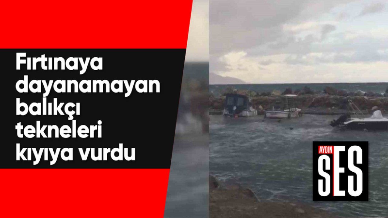 Aydın’ın Kuşadası ilçesinde etkili olan kuvvetli fırtına, Sevgi Plajı’ndaki balıkçı teknelerini karaya savurdu.