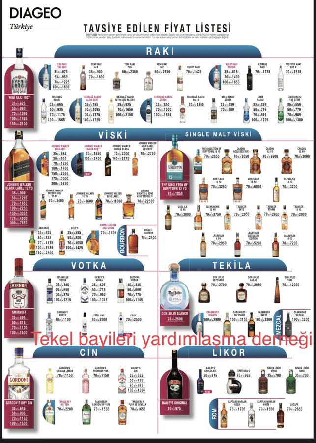 Alkollü içkilere yönelik fiyat artışları hız kesmeden devam ediyor. Temmuz ayı başında Özel Tüketim Vergisi (ÖTV) oranlarının yüzde 15,71 oranında artırılmasının ardından, içki gruplarındaki zamlar da peş peşe gelmeye başladı. Bugün itibarıyla Mey Diageo grubuna ait rakı, viski, votka, tekila, cin ve likör ürünlerine zam yapıldı.
