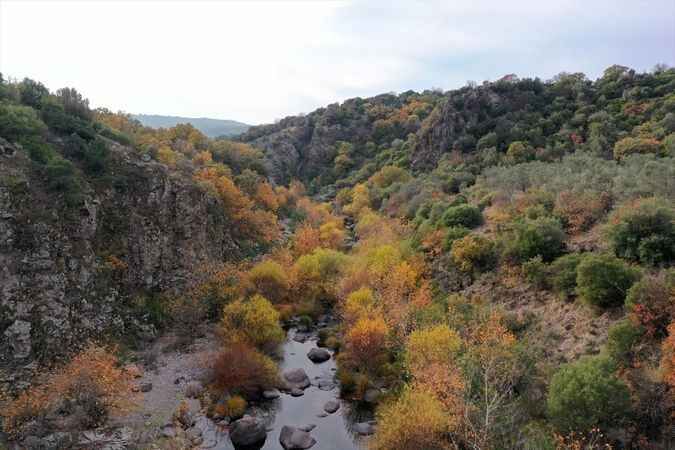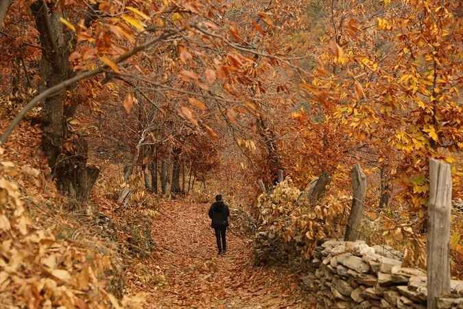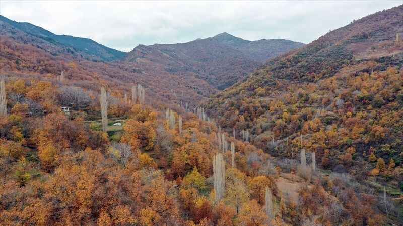 Aydın, İzmir ve Manisa'da dağlık alanlarda kızıl ve sarıya bürünen ağaçlar, eşsiz manzaralar oluşturdu.