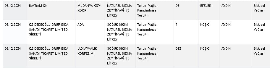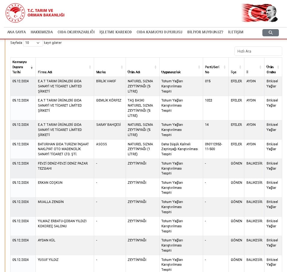 Tarım ve Orman Bakanlığı "Taklit veya Tağşiş Yapılan Gıdalar" ve "Sağlığı Tehlikeye Düşürecek Gıdalar" notunu düştüğü listede, vatandaşları kandırarak sağlıklarını tehdit eden firmaları ifşa etmeye devam ediyor.