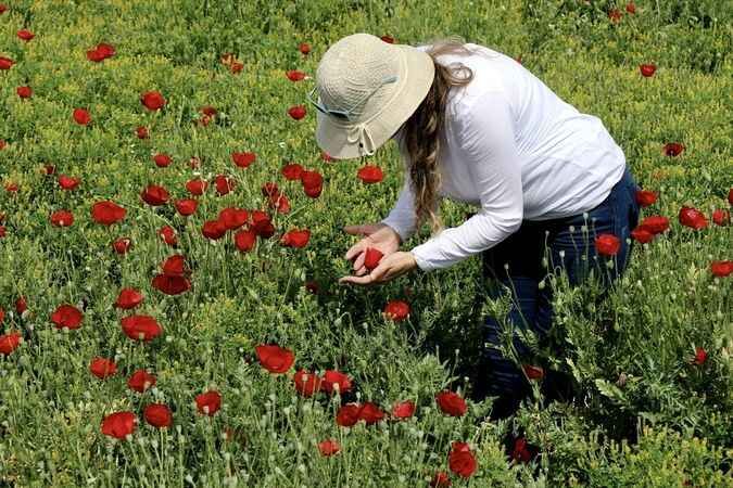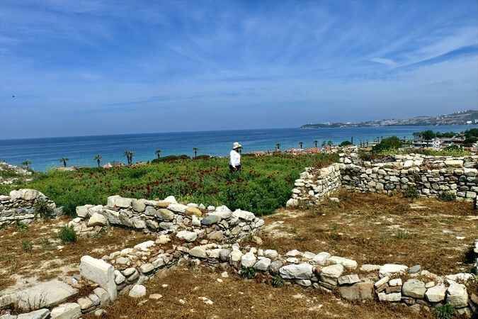 Aydın'ın Kuşadası ilçesinde geçmişi 5 bin yıl öncesine uzanan tarihi Kadıkalesi Ören Yeri'nde açan gelincikler görenlerin dikkatini çekiyor.