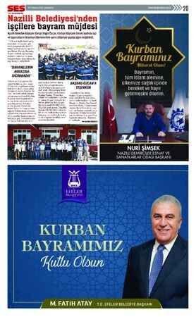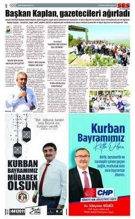 Ses Gazetesi'nin 29 Temmuz 2020 tarihli Kurban Bayramı ilanları bulunan gazetesi...
