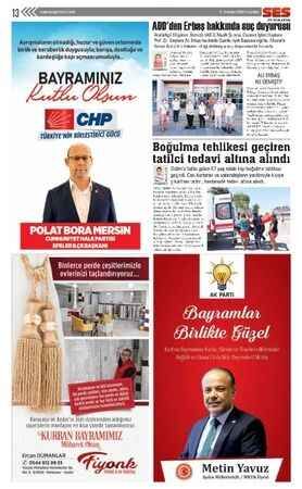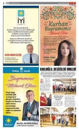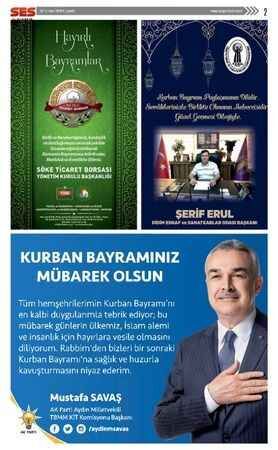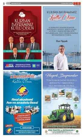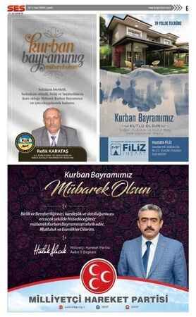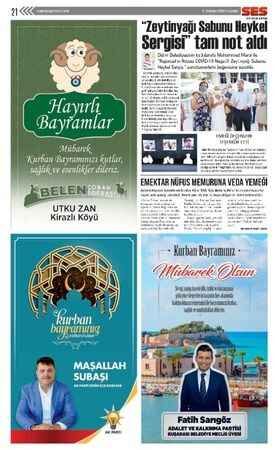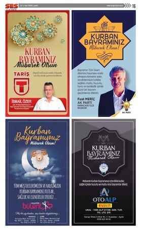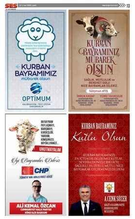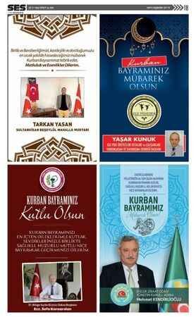 Ses Gazetesi'nin 30 Temmuz 2020 tarihli Kurban Bayramı ilanları bulunan gazetesi...