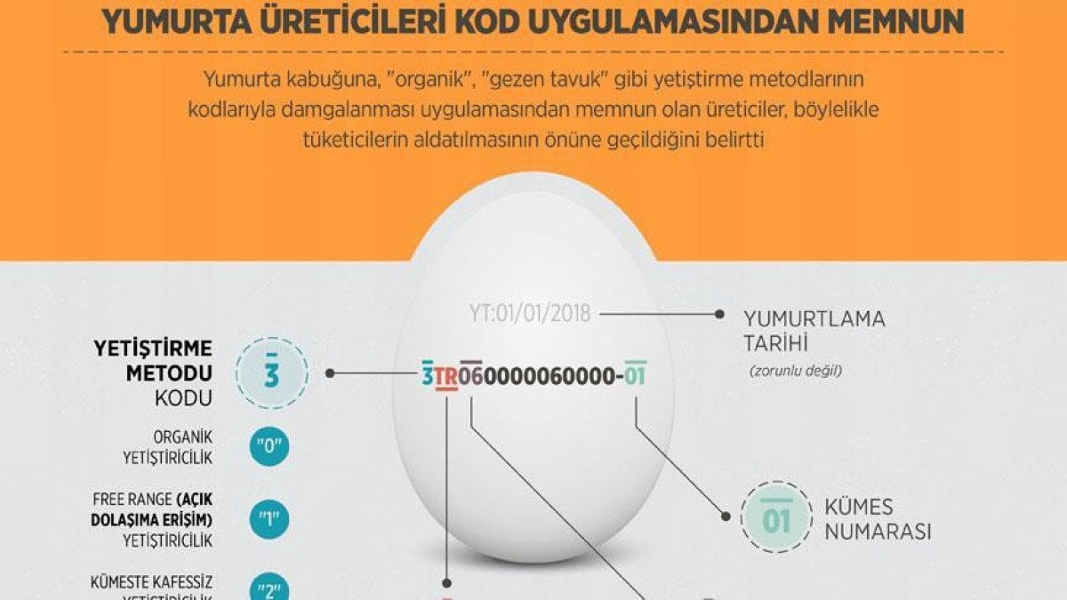Yetiştirme metodu kodu "0" ise bunun organik yetiştiriciliği, yani organik yemlerle beslenen, açık havaya da erişimi olan ve sertifikalandırılmış işletmelerden elde edilen yumurtayı, "1" ise açık dolaşıma erişim, yani açık havaya da erişimi olan bir kümeste yetişen ve serbest dolaşabilen tavuklardan elde edilen yumurtayı, "2" ise kümeste kafessiz yetiştiricilik, yani kapalı bir kümes içinde serbest dolaşabilen tavuklardan elde edilen yumurtayı, "3" ise kafesli yetiştiricilik, yani kümeslerde kafeste yaşayan tavuklardan elde edilen yumurtayı ifade ettiği bilgisi verilen açıklamada, şunlar kaydedildi: