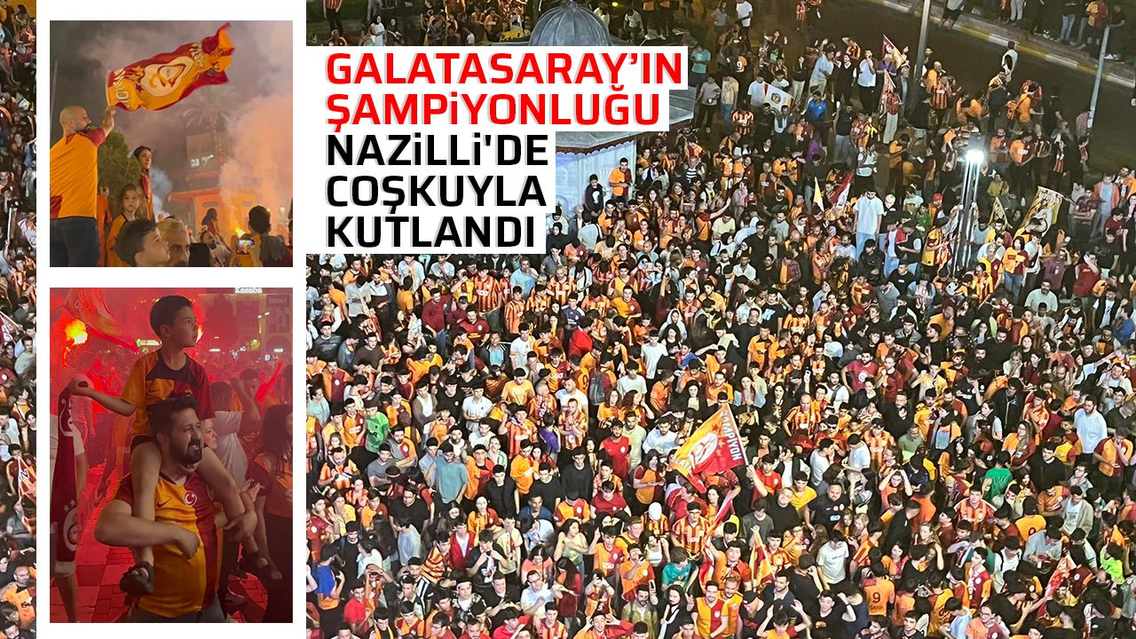 Türkiye Süper Liginde şampiyonluk son hafta maçında belli oldu. Bu akşam Konya deplasmanında Galatasaray Konyaspor’la karşılaşırken, 3 puan geriden takip eden Fenerbahçe ise ligden düşmesi kesinleşen İstanbulspor’la karşılaştı. Son şampiyon Galatasaray deplasman Konyaspor’u İcardi be Berkanın golleriyle 1-3 yenerek 2023-2024 sezonunda şampiyonluğunu ilan etti. Maçın bitmesinin ardından Nazillide Galatasaray taraftarları şampiyonluğu kutlamaya başladı. Belediye meydanında topalanan taraftarlar meşaleler yakarak meydanı renklendirdiler. Araba, motosikletleriyle sokaklara toplanan taraftarlar marşlarla şampiyonluğu kutladı.