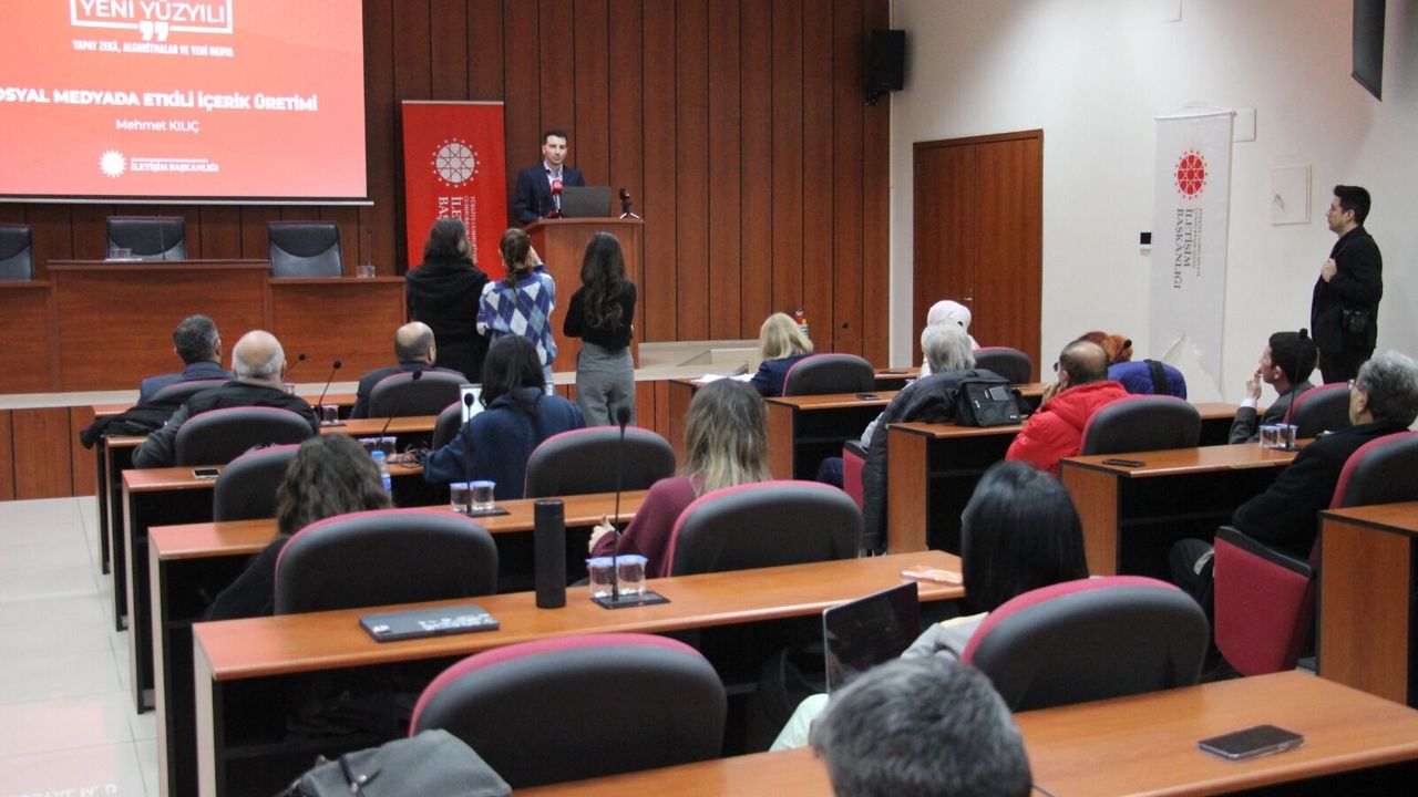 Cumhurbaşkanlığı İletişim Başkanlığı Muğla Bölge Müdürlüğü tarafından gazetecilerin dijitalleşen dünyada mesleki dönüşüme ayak uydurması amacıyla “İletişimin Yeni Yüzyılı: Yapay Zeka, Algoritmalar ve Yeni Medya” eğitim programı düzenledi. Efeler Kaymakamlığı YİKOB Salonu’nda gerçekleştirilen programda Cumhurbaşkanlığı İletişim Başkanlığı uzmanları Mehmet Kılıç ve Kıymet Sezer Güngör konuşmacı olarak yer aldı.