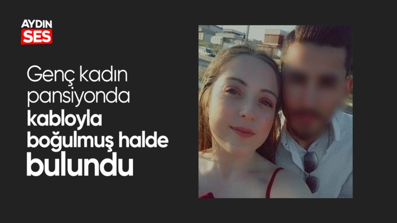 Olay bu akşam saatlerinde Atatürk Mahallesi'nde bulunan bir pansiyonda meydana geldi. Edinilen bilgiye göre, 3 gündür pansiyonda konaklayan Dudu Yılmaz (21) ve eşi R.Y.,'nin (26) odasına gelen görevliler, genç çiftten yanıt alamayınca durumu polis ekiplerine bildirdi. Adrese giden polis, odaya girdiğinde Dudu Yılmaz'ı boynuna kablo bağlı halde yerde hareketsiz yatarken buldu. Olay yerine çağrılan sağlık ekipleri tarafından yapılan incelemede genç kadının hayatını kaybettiği belirlenirken, Yılmaz'ın cenazesi savcı tarafından yapılan incelemenin ardından İzmir Adli Tıp Kurumu morguna kaldırıldı. Kayıp koca her yerde aranıyor