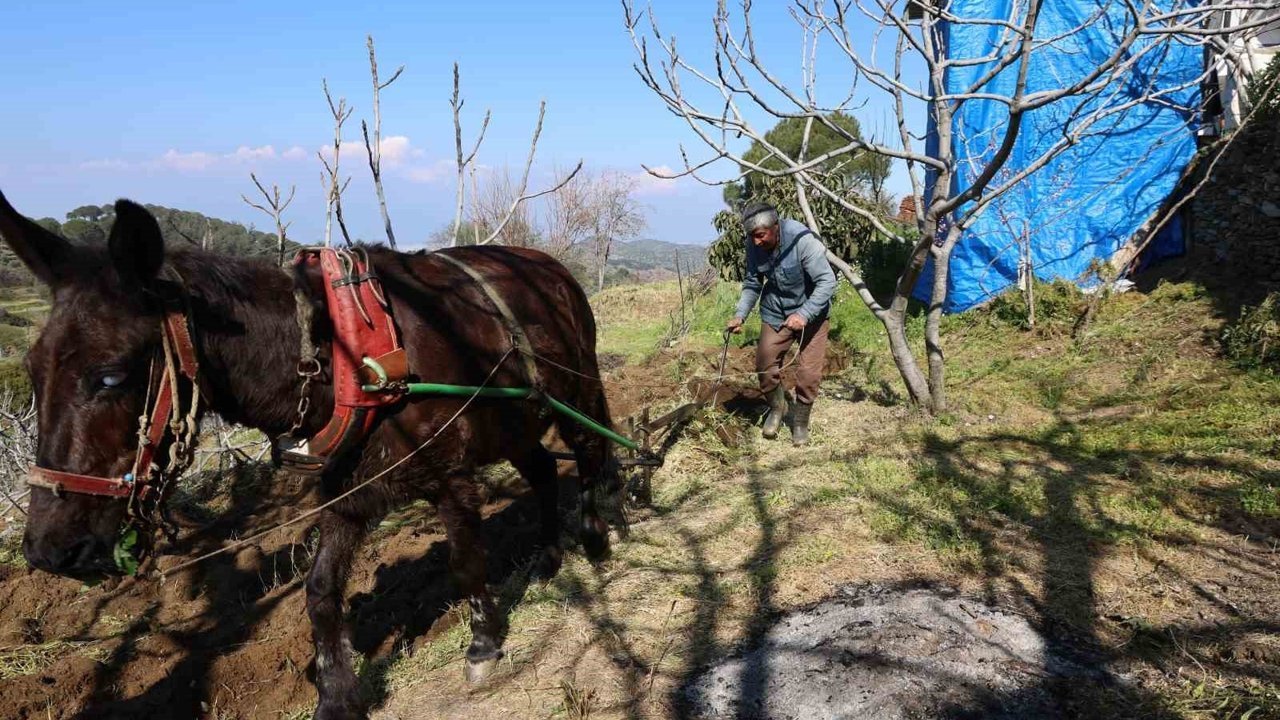 Katırla toprakları işleyen 66 yaşındaki Musa Küçük, köyün en gencinin 50 yaşlarında olduğunu ifade ederek, "İncirlerin, asmaların diplerini işliyoruz. Onları sürüyoruz. Bizim buralarda traktör zaten işleyemiyor. Çapa makinesi işliyor ama o da bunun yaptığı işi yapamıyor. Mecburen yine hayvanla çalışıyoruz. Bahar mevsimi geldiği zaman mart ayında başlarız bu toprakları işlemeye, hazirana kadar devam eder. Köylerimizde maalesef genç kalmadı. Köyün en gençleri biziz. Köyün en gençleri 50 yaş üzeri. Haliyle bizim başımıza kalıyor işler. Gençleri buraya çekmemiz için köylere destek verilmesi lazım. Böyle giderse bizden sonra bu toprakları işleyecek insan kalmayacak. Çoluk çocuk yetişmeyecek. Benim 3 evladım var, üçü de dışarıda" dedi.