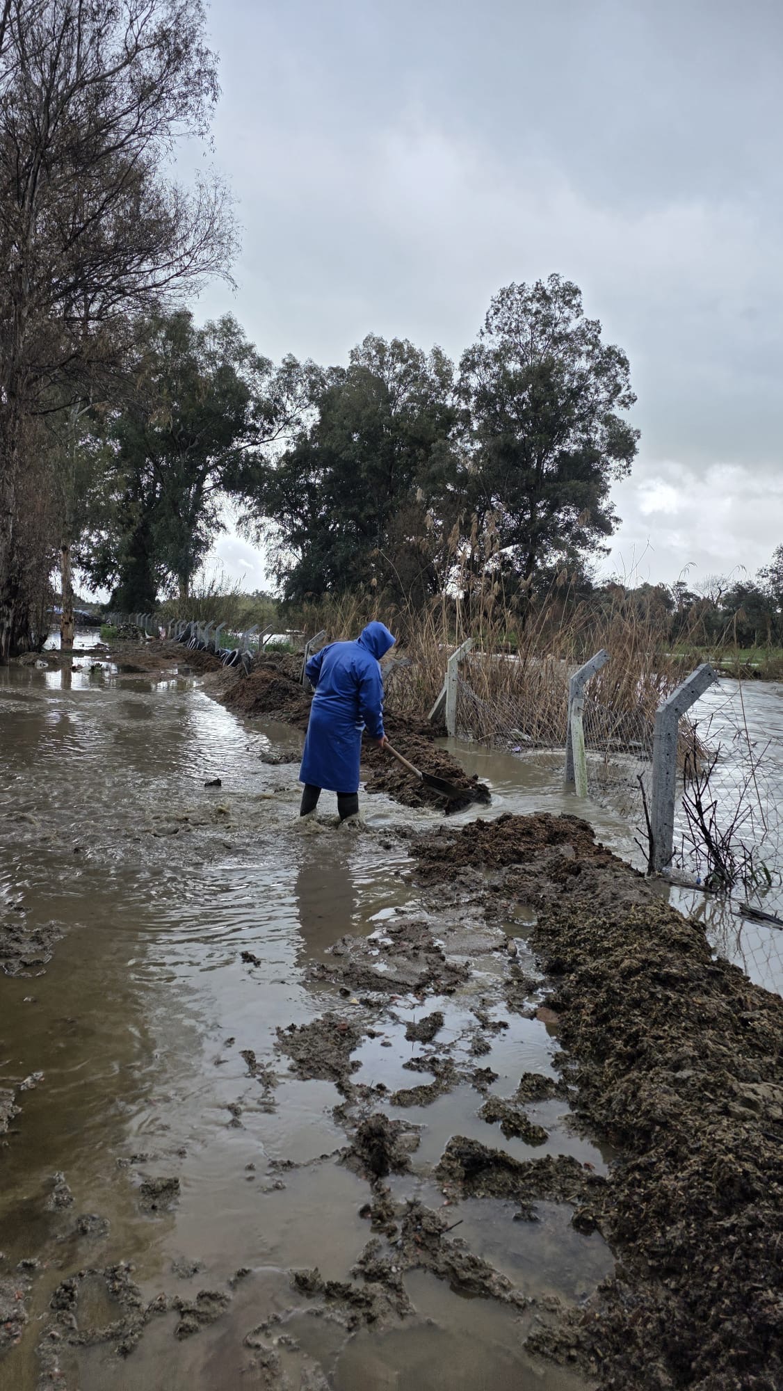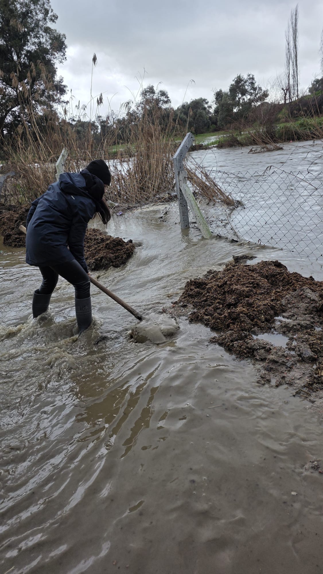 Günlerdir aralıksız devam eden şiddetli yağış, Germencik’te hayatı olumsuz etkilerken, Dağkaraağaç Mahallesi’nde bulunan Bilas hayvan çiftliği sular altında kaldı. İddiaya göre, Devlet Su İşleri’ne (DSİ) ait mahalle kanalının taşması sonucu, 130 büyükbaş hayvanın bulunduğu çiftlikte su seviyesi hızla yükseldi. Çiftlikte bulunan hayvanlar su içerisinde kalırken, yem ve ekipmanların zarar görmemesi için çiftlik çalışanları devlet kurumlarıyla koordineli şekilde tahliye çalışmalarına başladı.