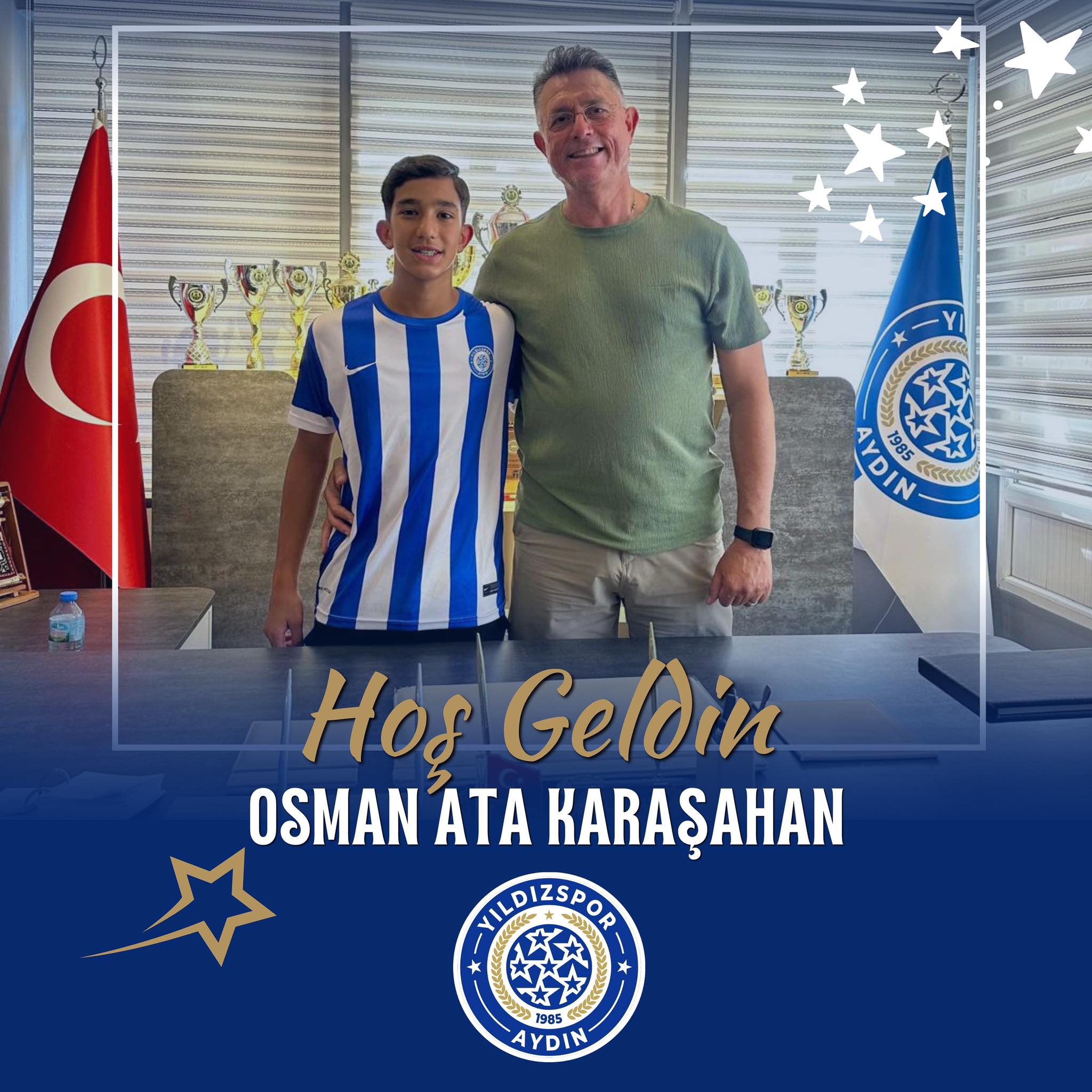 Son iki sezonun gol kralı olan Osman Ata Karaşahan’ın transferinin hayırlı olmasını dileyen Aydın Yıldızspor Kulüp Başkanı Kaya Özcan, “Aydın Zeybek Gençlik Spor Kulübünden, kendi yaş grubunun son iki sezonda gol kralı olan Osman Ata Karaşahan’ı kadromuza katmış bulunmaktayız. Transferinde kulübümüze kolaylık gösteren kulüp başkanı aynı zamanda değerli hocamız Osman Aktar’a, yönetim kuruluna ve futbolcumuz üzerinde emeği olan tüm hocalarımıza teşekkür ederiz. Genç yeteneğimize mavi beyazlı arma altında başarılar diliyoruz.” ifadelerini kullandı.