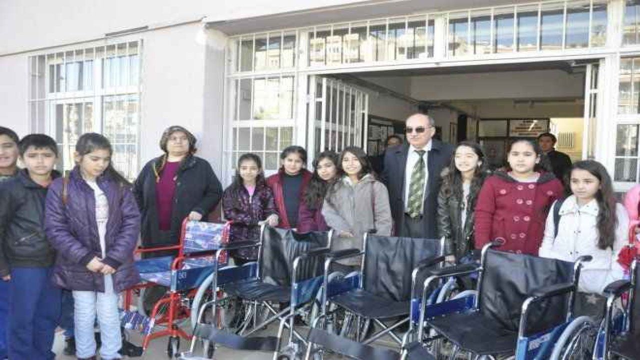 'Okulumla Sosyalleşiyorum Projesi' kapsamında ihtiyaç sahibi vatandaşlara 15 tekerlekli sandalye hediye eden öğrenciler, engelli yakınlarının talebi üzerine 5 tekerlekli sandalye daha temin etmek için sınıflarına kumbara yerleştirdi. Harçlıklarından artan parayı yaklaşık iki ay kumbaraya koyan öğrenciler, biriktirdikleri parayla 5 tekerlekli sandalye aldı. Okulda düzenlenen törenle öğrenciler ve okul yönetimi, tekerlekli sandalyeleri ihtiyaç sahiplerine teslim etti.
