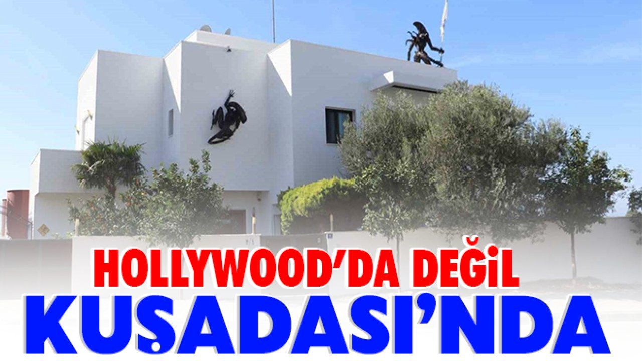 Almanya’nın Berlin kentinden 5 yıl önce Kuşadası’na gelen Sammy Tosuner’in ‘Alien’ heykelleri yerleştirdiği evi, sıra dışı görünümüyle dikkat çekerken, Alien filmindeki yaratığın maketlerinin yer aldığı ev, Hollywood stüdyolarındaki film mekanlarını aratmıyor.