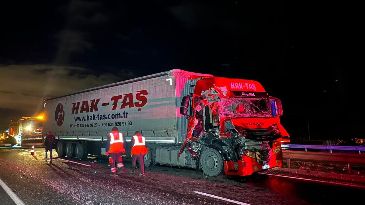 İki tırın çarpışması sonucu 1 sürücü yaralanarak hastaneye kaldırıldı.