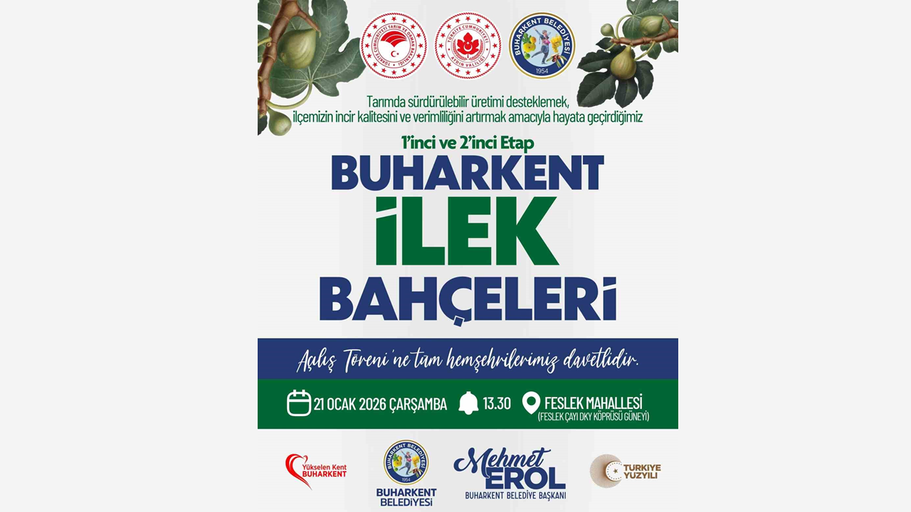 Buharkent Belediyesi öncülüğünde, Aydın Valiliği Yatırım İzleme ve Koordinasyon Başkanlığı (YİKOB) ile Buharkent İlçe Tarım Müdürlüğü iş birliğinde kurulan 1. ve 2. Etap İlek Bahçeleri, 21 Ocak 2026 Çarşamba günü saat 13.30’da gerçekleştirilecek. Açılış töreni, Feslek Mahallesi’nde bulunan ilek bahçesinde Feslek Çayı DKY Köprüsü’nün güneyinde gerçekleştirilecek.