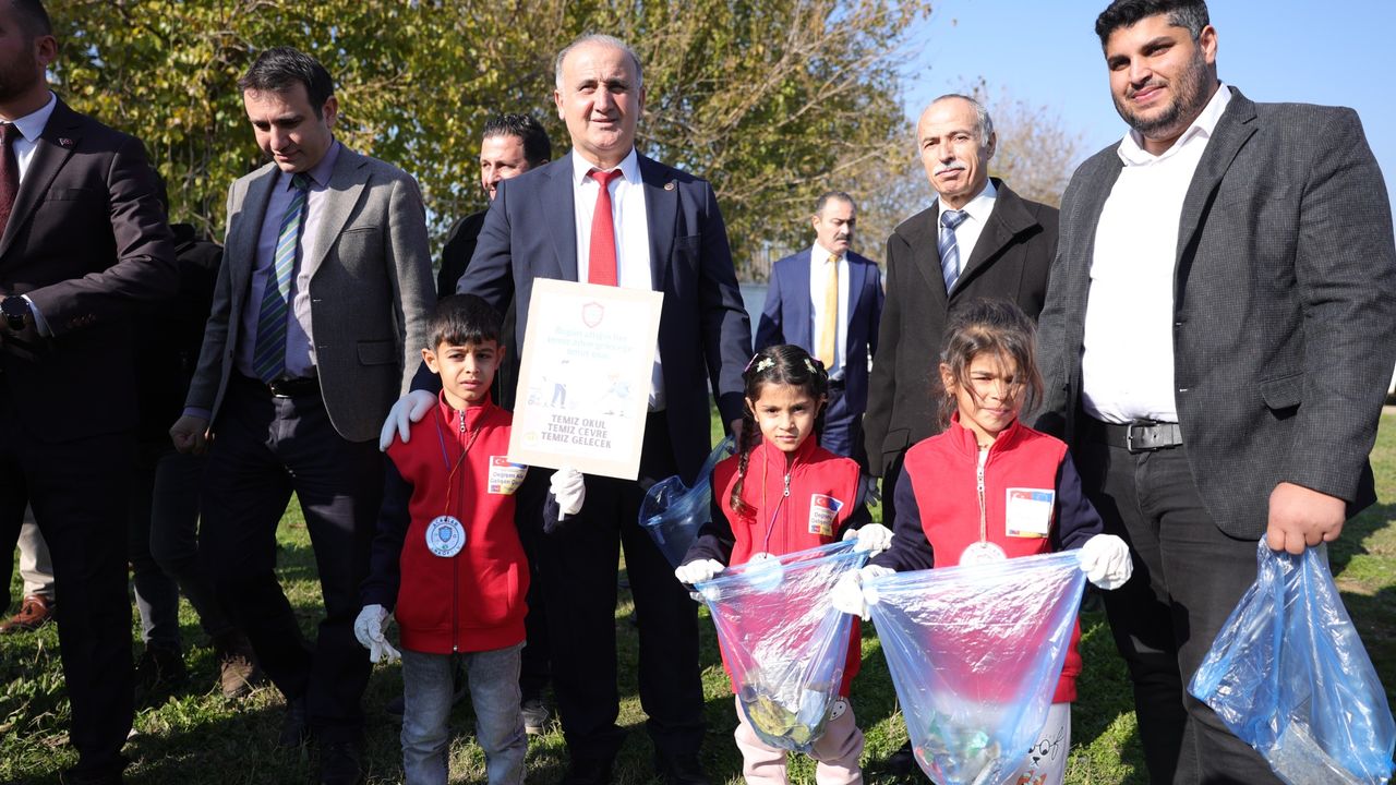 Çocuklara sağlıklı ve temiz çevre bilinci kazandırmak amacıyla düzenlenen etkinlikte, minik öğrenciler okul bahçesi ve çevresinde temizlik çalışması yaptı. Protokol üyeleri de etkinlik boyunca çocuklara eşlik ederek destek verdi.