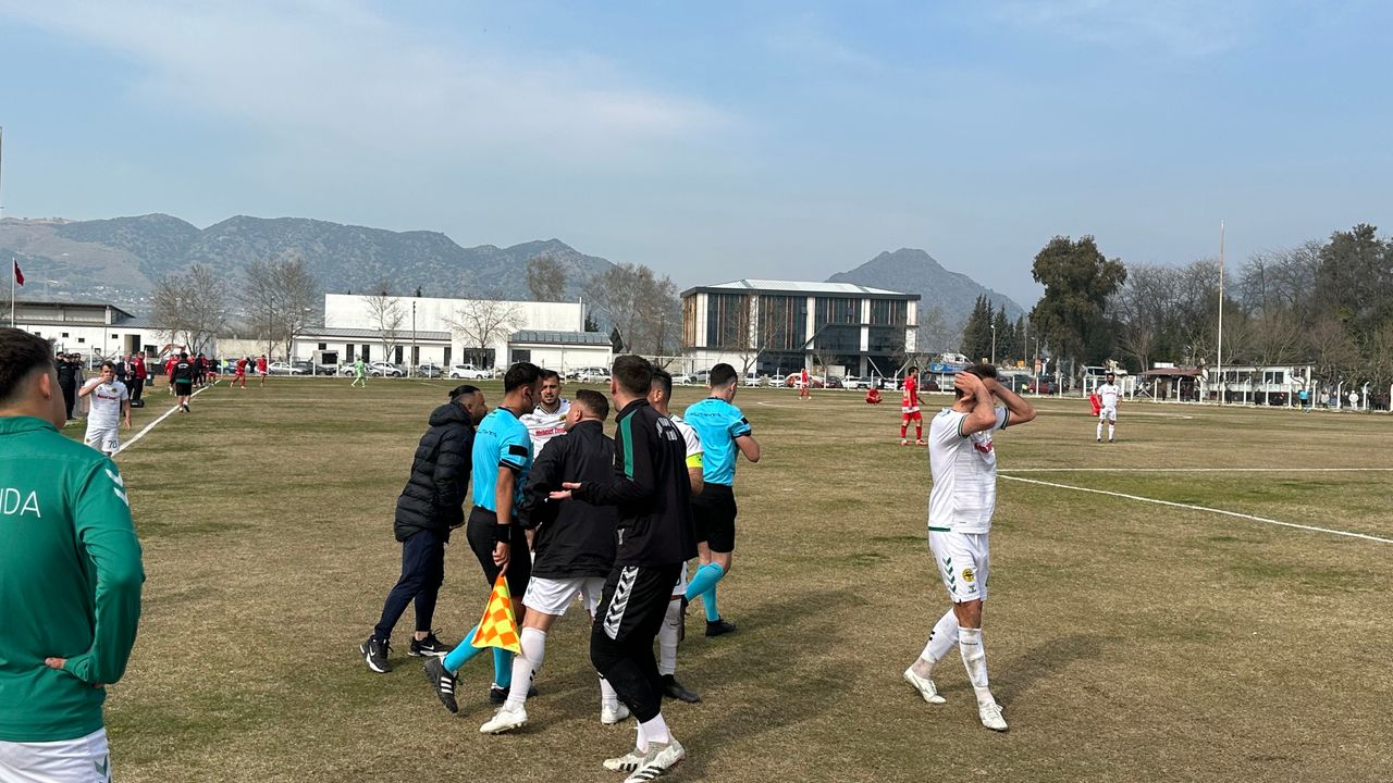 Karara Çine Madransporlu futbolcular uzun süre itiraz etse de hakem kararını değiştirmedi.