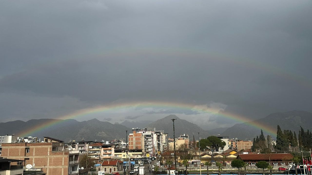 Kısa süre boyunca ilçe semalarında görülen gökkuşağı, bir süre sonra gözden kayboldu.