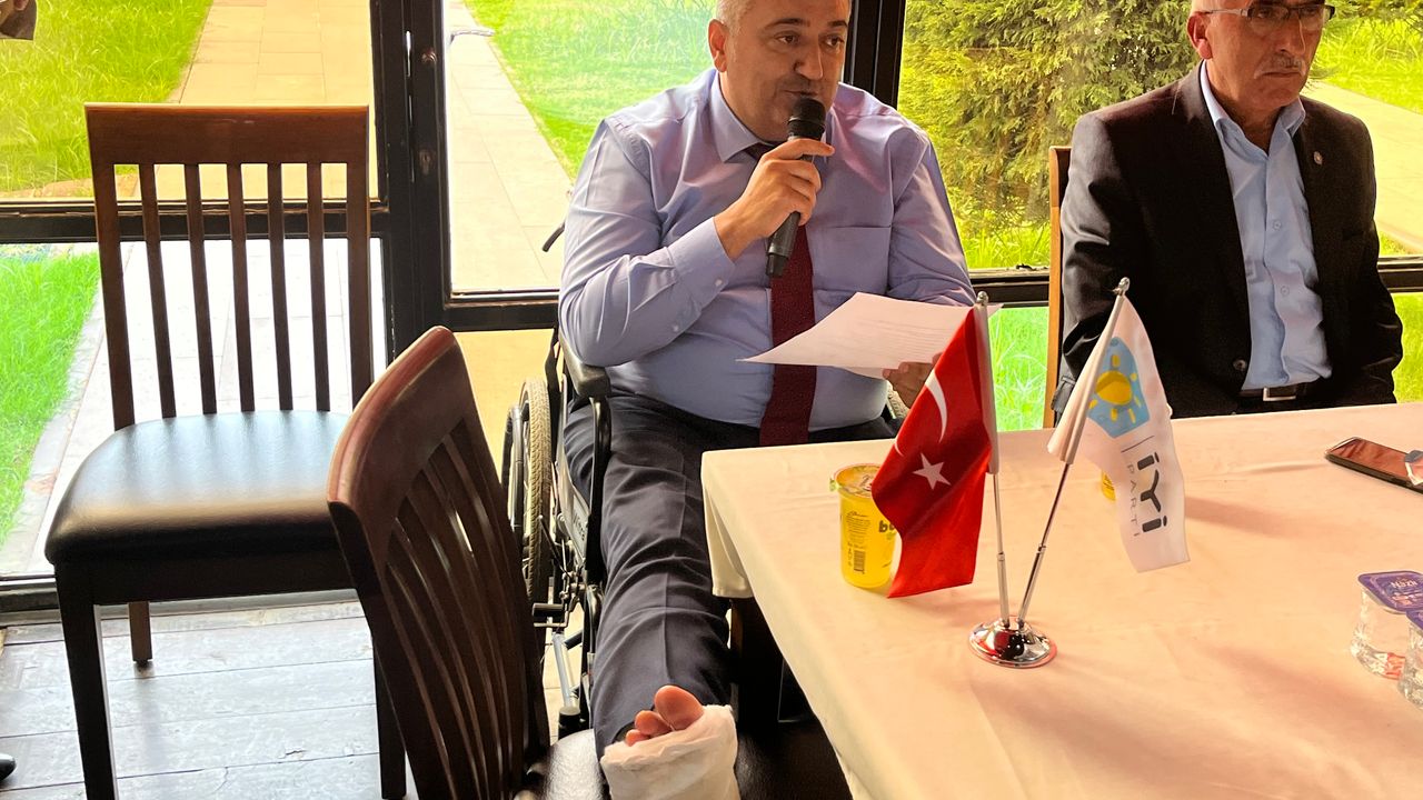 Kısa süre önce yaşadığı kaza nedeniyle sağ ayağı alçıya alınan Başkan Akol, kongre salonuna tekerlekli sandalyeyle geldi. Salonun girişinde partililer tarafından alkışlarla karşılanan Akol, misafirlerini tek tek selamlayarak ilgisini eksik etmedi.