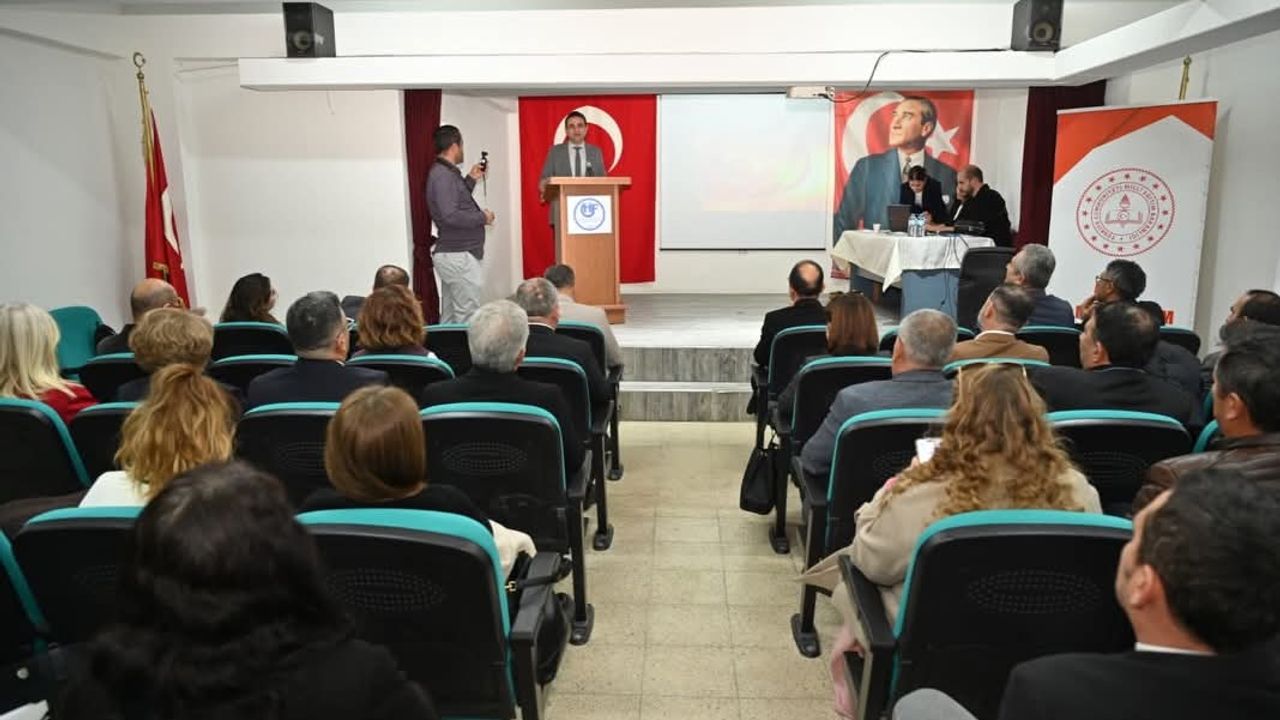 İzleme ve Gelişim Projesi (İZGE) çerçevesinde, Kuşadası Hasan Fatma Önal Anadolu Lisesi Konferans Salonu’nda düzenlenen toplantıya Aydın İl Millî Eğitim Müdürü Mehmet Yiğit, Kuşadası İlçe Millî Eğitim Müdürü İbrahim Ataman, ilçe milli eğitim şube müdürleri ve okul müdürleri katılım sağladı.