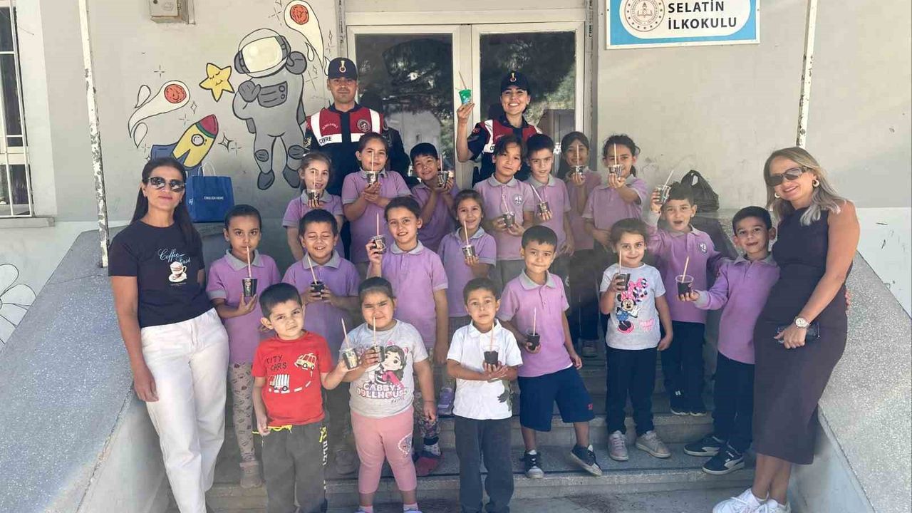 Aydın İl Jandarma Komutanlığı Çevre ve Doğa Koruma Timi tarafından, Germencik ilçesi Ortaklar Bölgesinde Selahatin İlkokulu öğrencilerine çevreye duyarlı bireyler olarak yetişmelerini sağlamak amacıyla anlamlı bir etkinlik gerçekleştirildi.