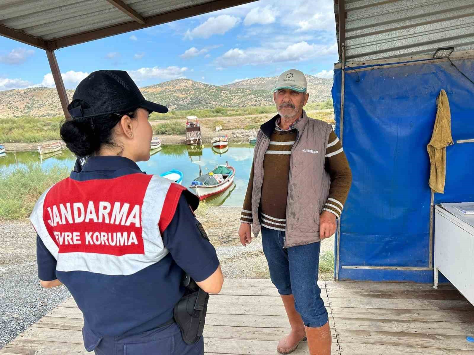 Bu çerçevede ekipler, Bafa Gölü Tabiat Parkı’nda çevre denetimi gerçekleştirdi. Gölde yaşayan ve doğada nadir bulunan tepeli pelikan, sakar meke, yeşilbaş ördek, flamingo gibi yaban kuş türlerinin yaşam alanlarının kontrolünü yapan jandarma ekipleri, özellikle Meksika Körfezi’nden yola çıkarak 7 bin km yol kat edip Bafa Gölü’nde yaşam alanını sürdüren, koruma kapsamında olan yılan balığı ile diğer balık türlerine yönelik kaçak balık avcılığı yapan kişilere yönelik de genel kontroller yapıldı.
