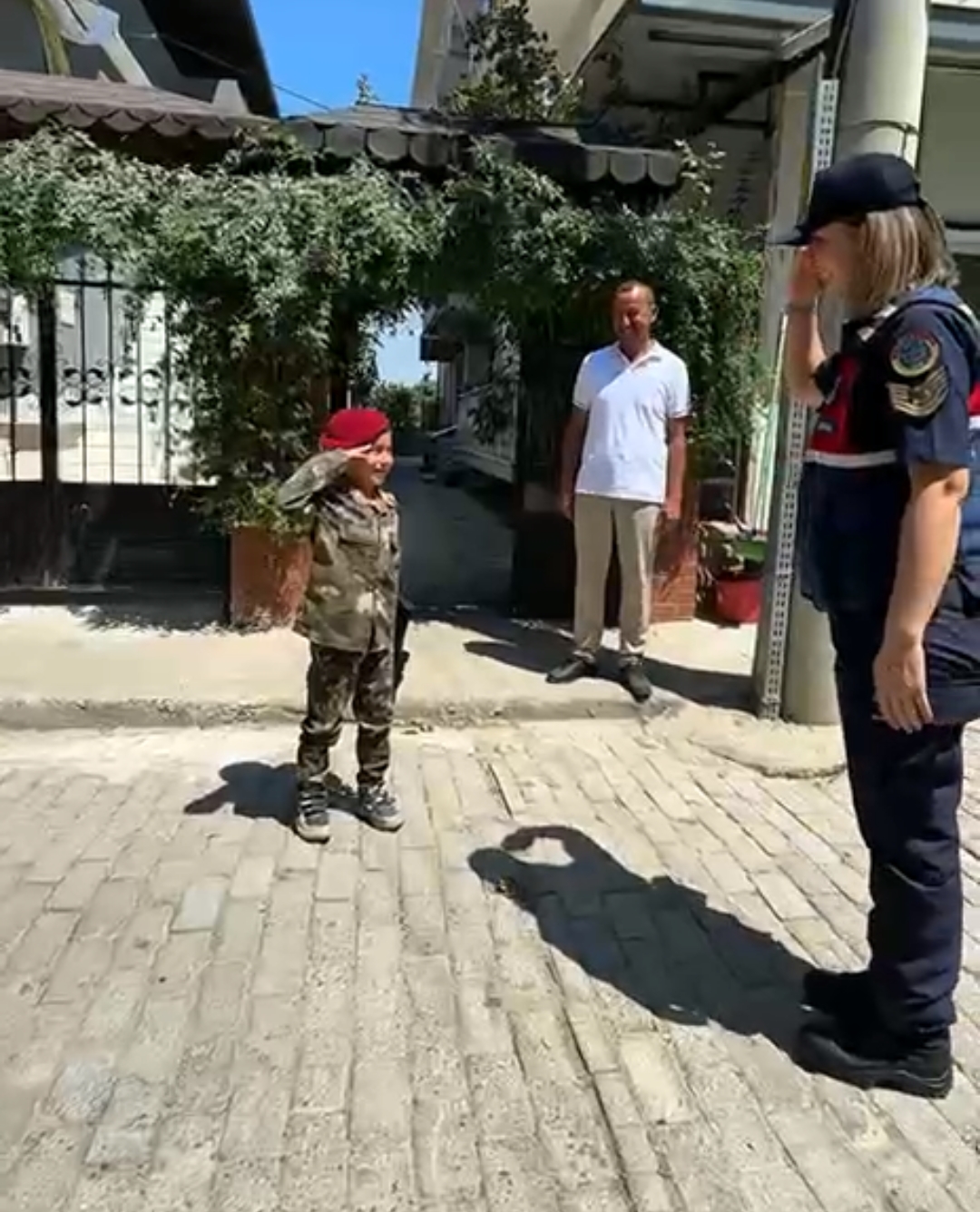 Ziyarette jandarma personeli, “15 Temmuz’da şehadet şerbetini içen kahraman komutanımız Ömer Halisdemir’in adını yaşattığın için seni ziyarete geldik. Göğsünü vatan için siper edecek sizin gibi kahramanlara ihtiyacımız var. Sen de o kahramanlardan biri olacak mısın?” diyerek küçük Ömer Halis’e duygularını iletti.