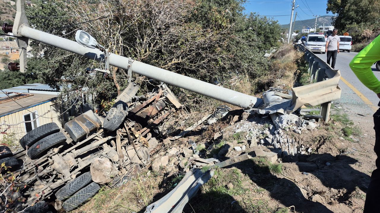 Yoldan çıkıp çelik bariyerlerle beton aydınlatma direğine çarpıp devirdikten sonra şarampole düştü. Sürücü kamyon içerisinde sıkıştı. İhbarın ardından olay yerine sağlık, polis, itfaiye, elektrik, zabıta ekipleri sevk edildi. Kamyonun ters dönmemesi için ekskavatörün kepçesiyle destek verildi. Kamyonunun olduğu bölgedeki ağaç dallarını kesen itfaiye ekipleri, sürücü R.Ş.'yi sıkıştığı yerden çıkardı.