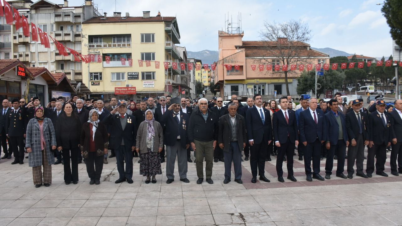 Karacasu Cumhuriyet Meydanında düzenlenen törene şehit aileleri ve gaziler ile birlikte Karacasu Kaymakamı Mehmet Gündoğdu, Belediye Başkanı Mustafa Büyükyapıcı, Cumhuriyet Savcısı Veysel Kasım Gülbahar, Baro Temsilcisi Sevgi Kulcu Öncü, Karacasu Memnune İnci Meslek Yüksekokulu Müdürü Mehmet Taşdelen, AK Parti İlçe Başkanı Levent Altınöz, CHP İlçe Başkan Vekili İbrahim Kayahan, İYİ Parti İlçe Başkan Vekili Ali Çolak, MHP İlçe Başkanı, daire amirleri, sivil toplum kuruluşu temsilcileri, okul müdürleri, öğretmen ve öğrenciler katıldı. Kaymakamlık ve Belediye Başkanlığı çelenginin sunulmasının ardından Saygı duruşu yapılıp İstiklal Marşı okundu. Kırçiçeği Anadolu Lisesi öğrencilerinden Eylül Yaren Koçoğlu'nun Çanakkale Şiirini okumasının ardından Astsubay Çavuş Kasım Baran günün anlam ve önemine ilişkin konuşmayı gerçekleştirdi.