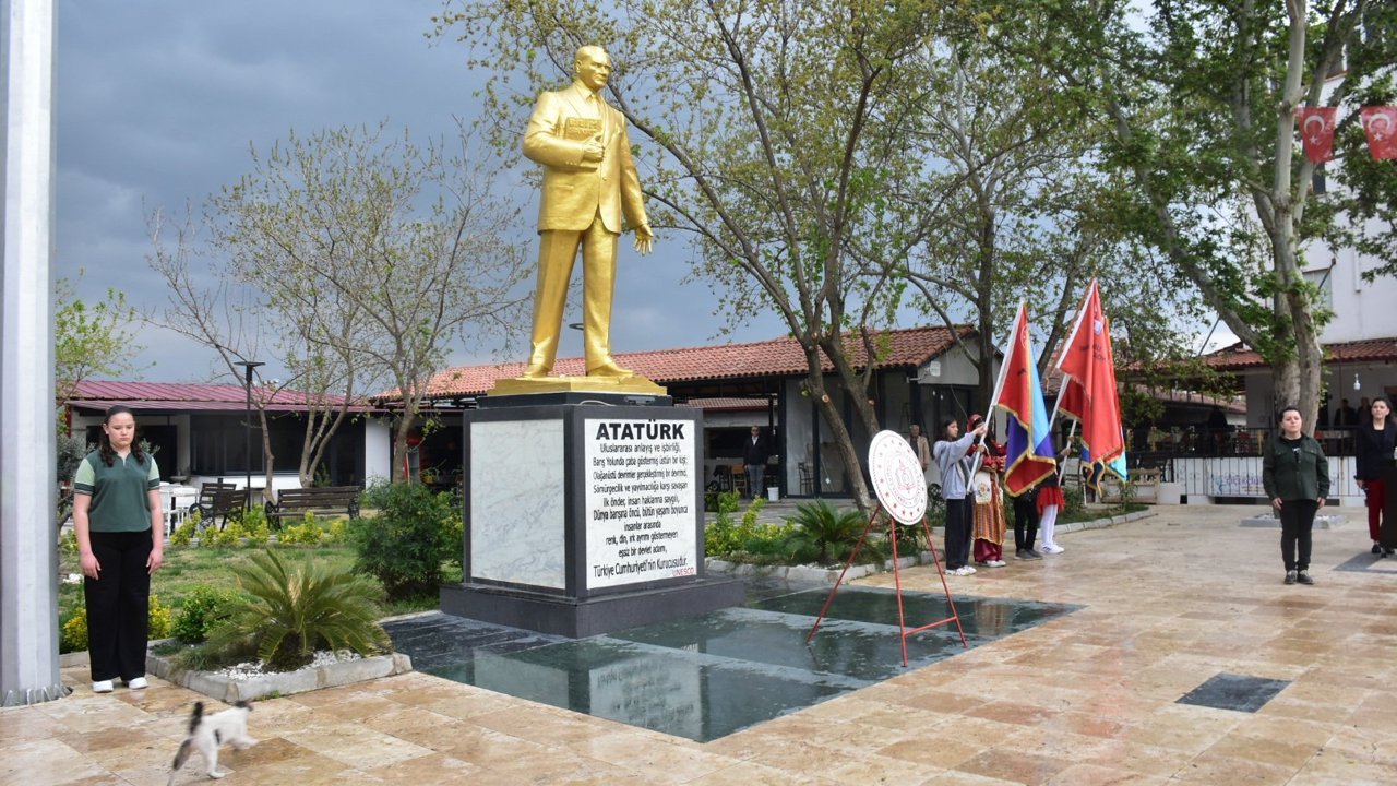 Kutlama programı, sabah saatlerinde Atatürk Anıtı önünde gerçekleştirilen çelenk sunma töreniyle start aldı. Cumhuriyet Meydanı’ndaki törende, Milli Eğitim Müdür Vekili Ali Yıldız, beraberindeki çocuklarla birlikte Atatürk Anıtı’na çelenk bırakarak Ata’nın huzuruna çıktı.