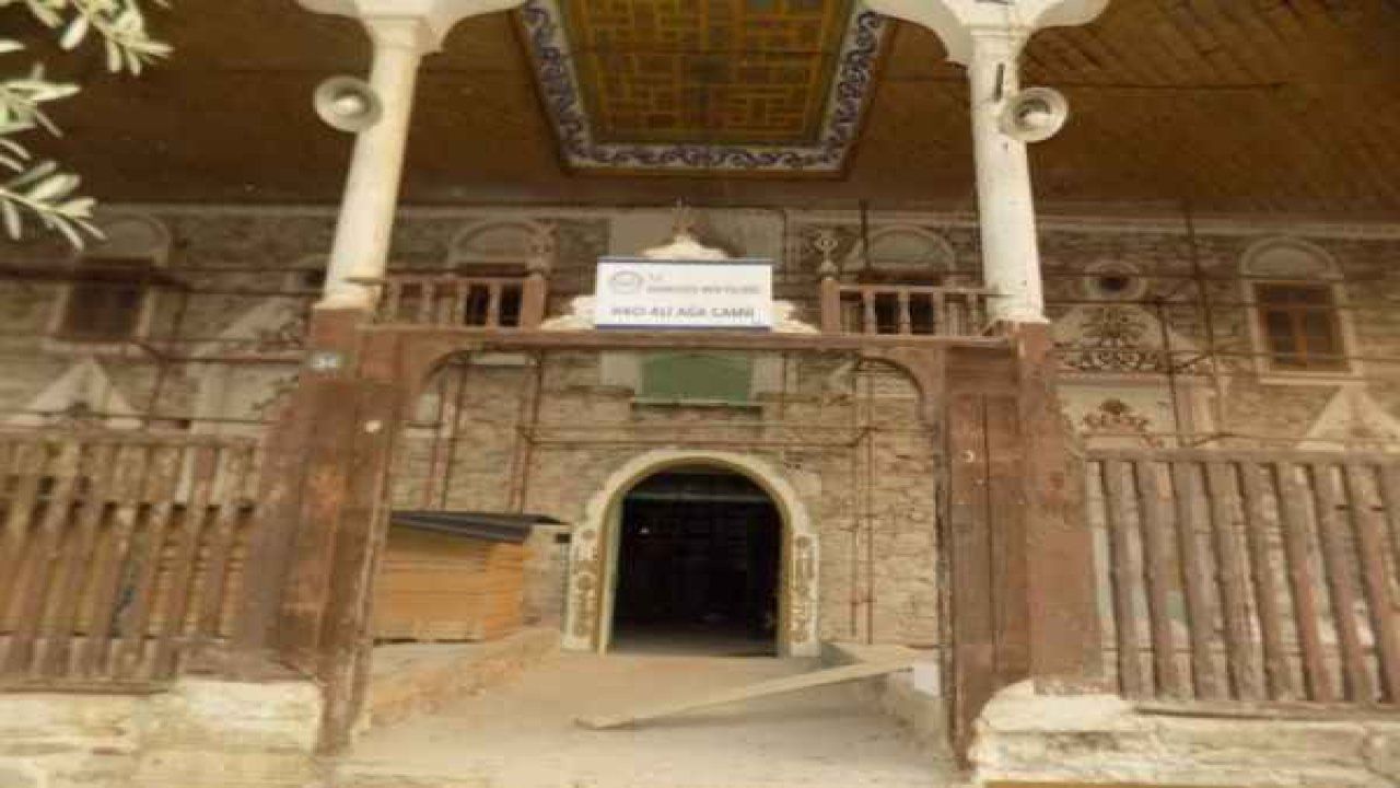 Çarşı Camii olarak da bilinen Hacı Ali Ağa Camii, avlunun batısındaki kitabeye göre 1591 yılında yapıldı. Minaresinde de 1728 ve 1884'te yapılmış onarım kitabeleri bulunan cami, moloz taş ve tuğladan yapılmış, dikdörtgen planlı, ahşap çatılı, kiremitle örgülü kargir yapı niteliği taşıyor. İki sıra alınlıklı pencere ile aydınlanması sağlanan camide, 10 ahşap sütuna oturan beş bölümlü son cemaat yerinde sütun başlıklarının üstündeki alınlıklarda esas mekan giriş kapısının çevresinde ve iki yandaki mihrap nişlerinin üstünde çiçek dalları, vazodan çıkan bitki motifleri, stilize selvi ağacı gibi son döneme ait rokoko süsler görülür.