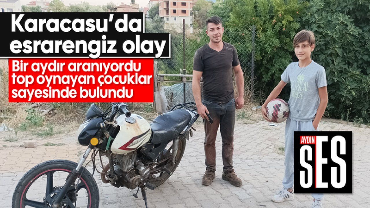 Olay, Karacasu ilçesi Yaylalı Mahallesi Yalı Sokakta eski Karşıyaka köprüsüne inilen derede meydana geldi. Bir ay önce Yalı Sokakta bir evin önünden çalınan 2014 model Kuba CG marka 20 BLE 54 plakalı 15-20 bin lira değerindeki motosiklet plakası alındıktan sonra dereye atılmış halde bulundu. Karacasu Şehitleri Ortaokulu bahçesinde top oynayan çocuklar dereye kaçırdıkları topu aramak için dere yüzüne geldi. Çocuklar topu ararken derenin içerisinde birkaç metre aşağıda çalıların altına gizlenen motosikleti buldu. Çocukların polise haber vermesi üzerine Karacasu Emniyetinde görevli polisler bölgeye geldi. İlk olarak kendi imkanlarıyla derenin içindeki motosikleti çıkarmaya çalışan görevliler başarılı olamayınca Belediyeden kepçe çağırdı. Bu esnada kendilerine gelen çalıntı motosiklet ihbarlarını değerlendiren ekipler motosikletin sahibi olabileceğini düşündükleri bir kişiyi bölgeye çağırdı. Yapılan incelemede motosikletin Muhammet Çoban isimli bu kişiye ait olduğu teyit edildi. Dereye inen Çoban'ın bağladığı ip yardımıyla ekipler ve vatandaşların desteği ile motosiklet bulunduğu yerden çıkarıldı. Motosikletin neden dereye atıldığı gizemini korurken sahibi bir ay sonra motosikletine kavuşmanın sevincini yaşadı.