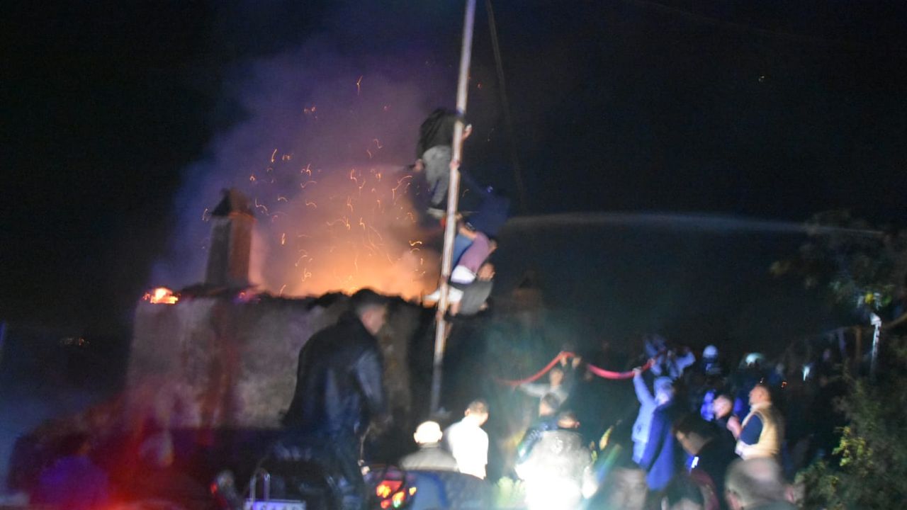 İtfaiye ekipleri ile birlikte köy halkı yangını söndürmek için büyük çaba harcadı. Yangın evde kimsenin bulunmadığı sırada meydana geldi.