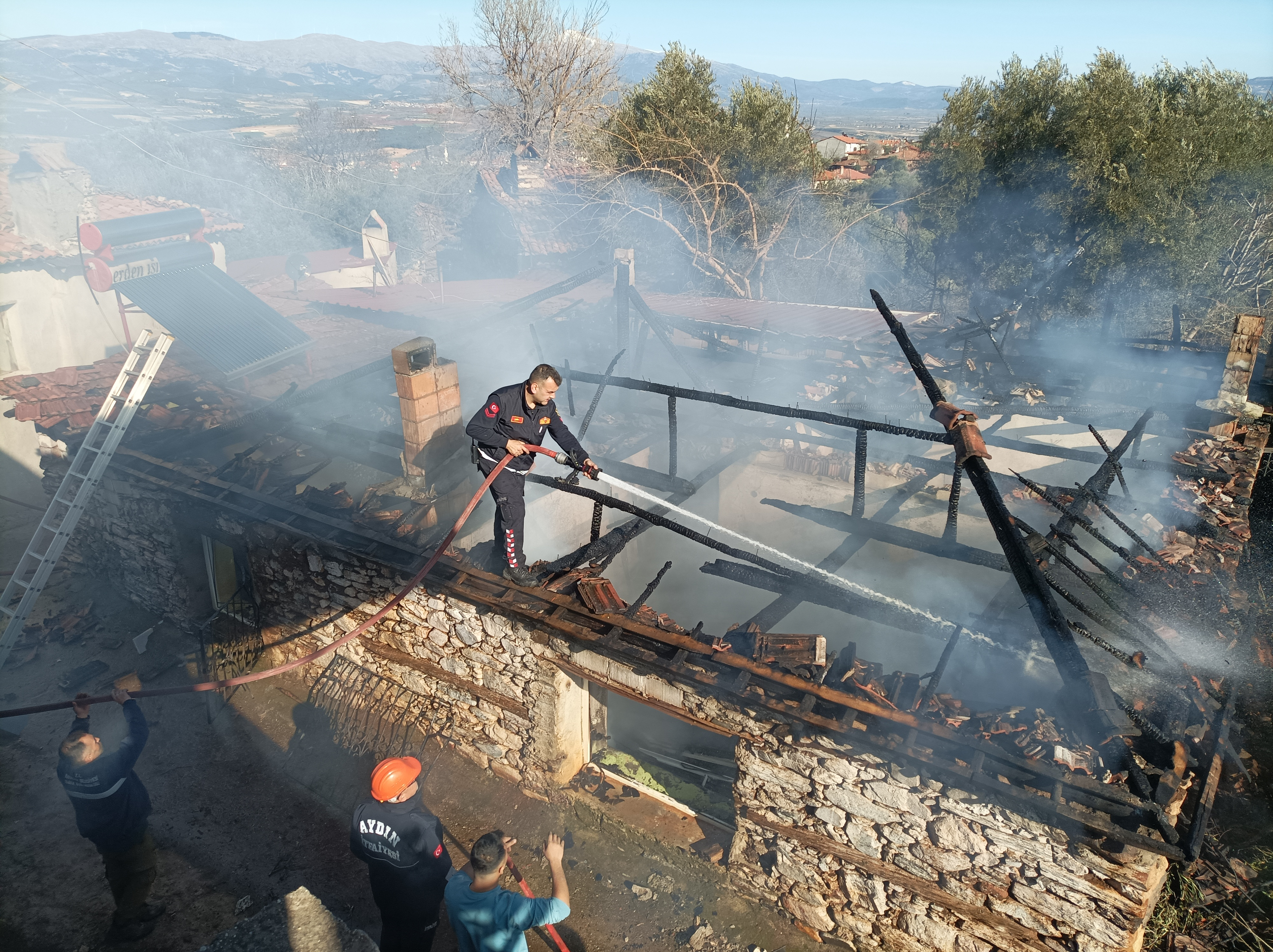 Karacasu'ya bağlı Küçükdağlı Mahallesi Şehit Olcay Altun Caddesi No:59'da bulunan Feridun Atlay'a ait ev 11 Mart'ta çıkan yangın sonucu tamamen yandı. Aile AFAD'tan gelen 150 bin lira ve kendi imkanlarını kullanarak yanan evin yerine inşaat çalışmasına başladı. 67 bin liralık borç sebebiyle beton atma çalışmasını yarıda kaldı. Maddi imkanları kalmayan aile dört duvarı dahi olmayanlar inşaat alanında açıkta yaşam mücadelesi veriyor. Burada yatıp kalan, burada küçük mutfak tüpünde yemek yaparak yaşamayan çalışan 3 kişilik aile yardımseverlere seslendi. Emekli maaşıyla evi yaptırmasının mümkün olmadığı ifade eden Feridun Atlay, yardım beklediklerini dile getirdi.
