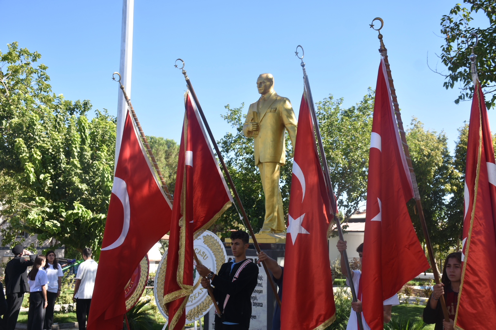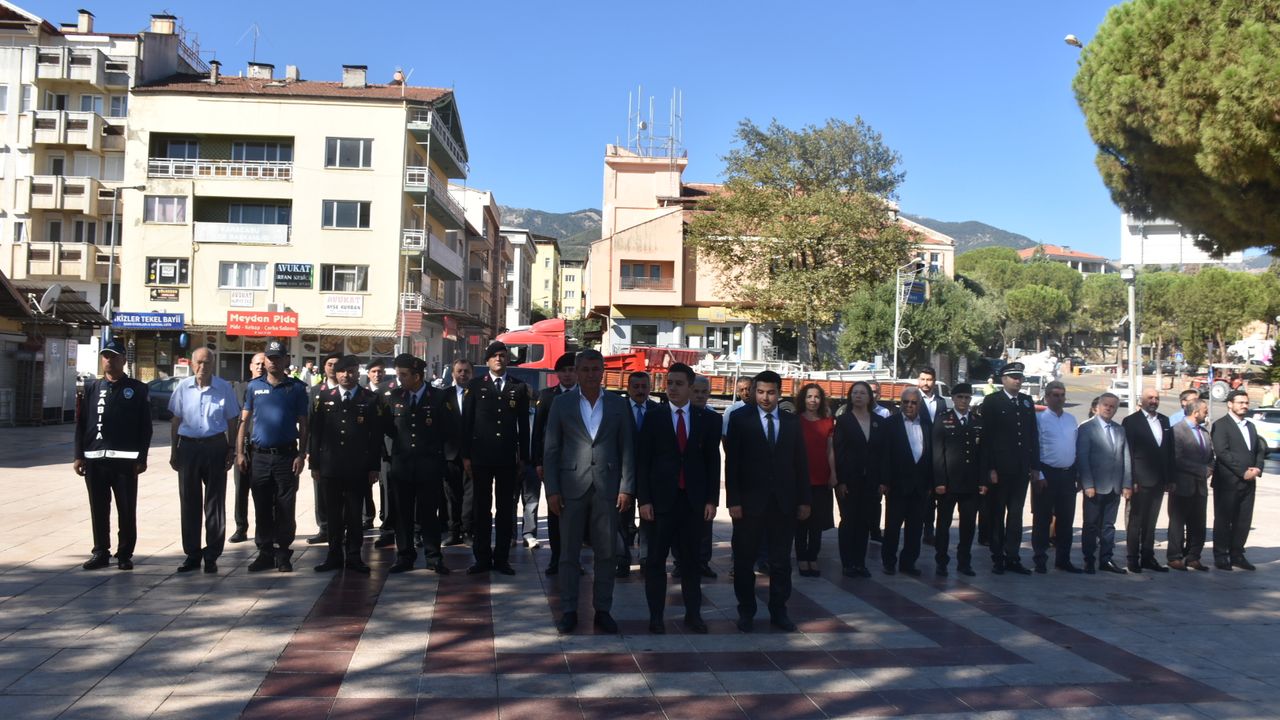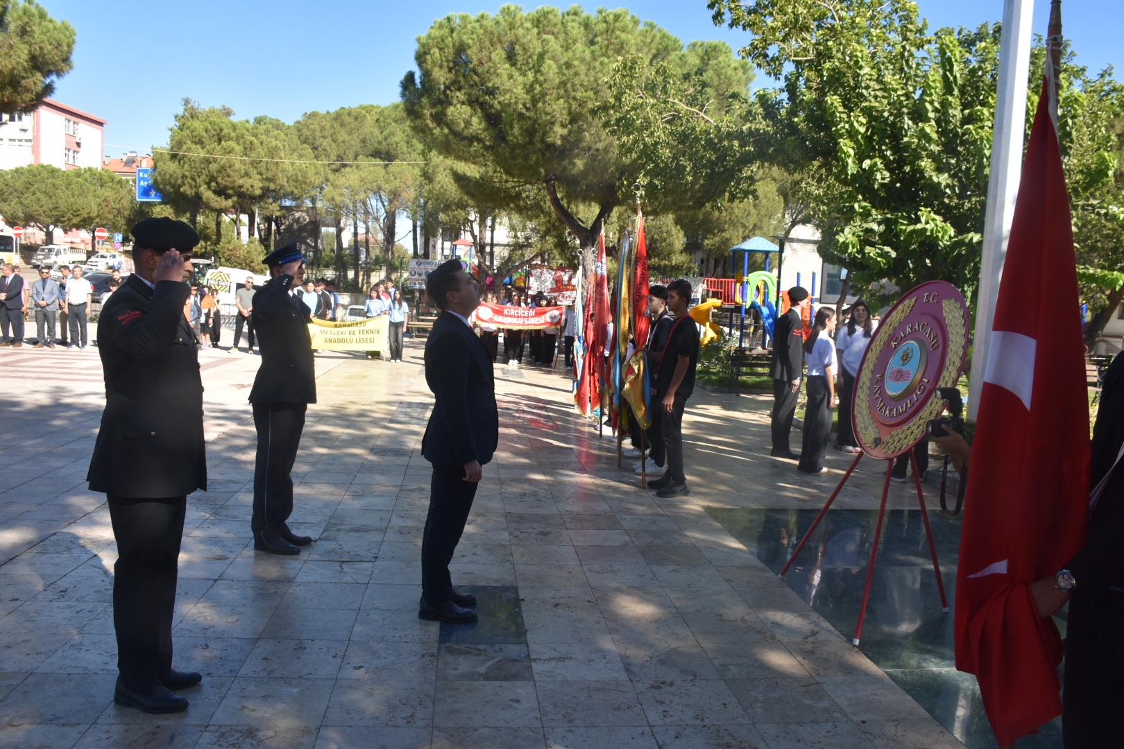 Cumhuriyet Meydanındaki törene Karacasu Kaymakamı Mehmet Gündoğdu, Belediye Başkan Vekili Mehmet Altıntaş, Cumhuriyet Savcısı Ali Osman Tan, Emniyet Amiri Mustafa Kulaksız, Baro Temsilcisi Sevgi Kulcu Öncü, Karacasu MYO Müdürü Mehmet Taşdelen, daire amirleri, sivil toplum ve siyasi parti temsilcileri katıldı.