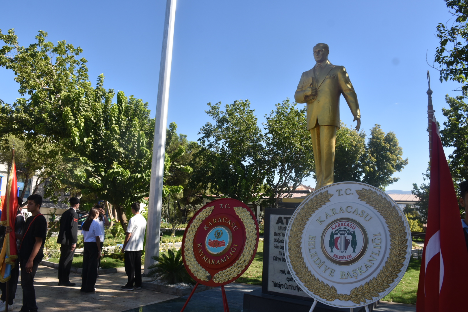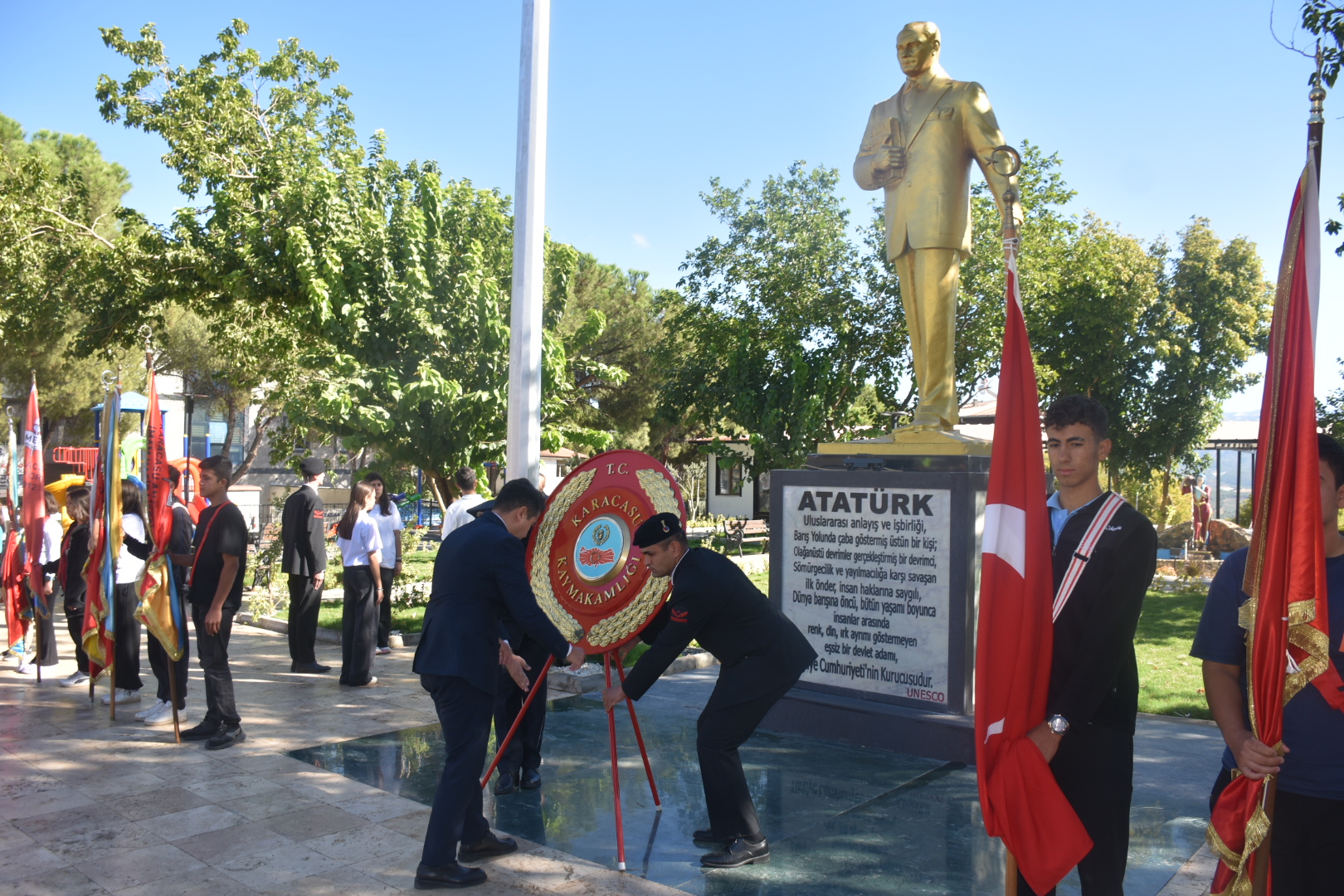 Kaymakam ve Belediye Başkanlığı çelenginin Atatürk Anıtına sunulmasının ardından Saygı duruşu yapılıp İstiklal Marşı okundu. Günün anlam ve önemine ilişkinin konuşmanın Karacasu Jandarma personeli tarafından yapılmasından sonra Karacasu Şehitleri Ortaokulu öğrencisi Kerem Karabacaklı günün anlam ve önemine ilişkin şiiri okudu.