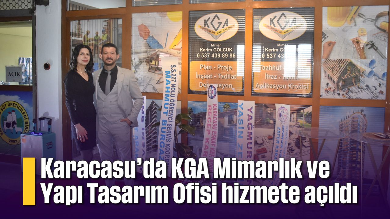 Mimarlık ve iç mimarlık alanlarının yanı sıra plan, proje, inşaat, taahhüt, harita, ifraz, tevhit, aplikasyon krokisi konularında ilçe halkına hizmet verecek olan KGA Mimarlık ve Yapı Tasarım Ofisinin açılışında Eşi Nazmiye Gölcük ile birlikte misafirleri ağırlayan Kerim Gölcük çalışma hayatı ve Karacasu'ya kazandırdığı ofis hakkında bilgiler verdi.