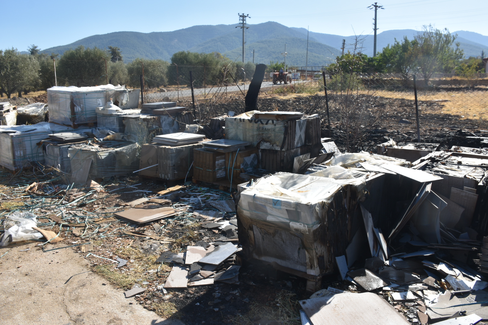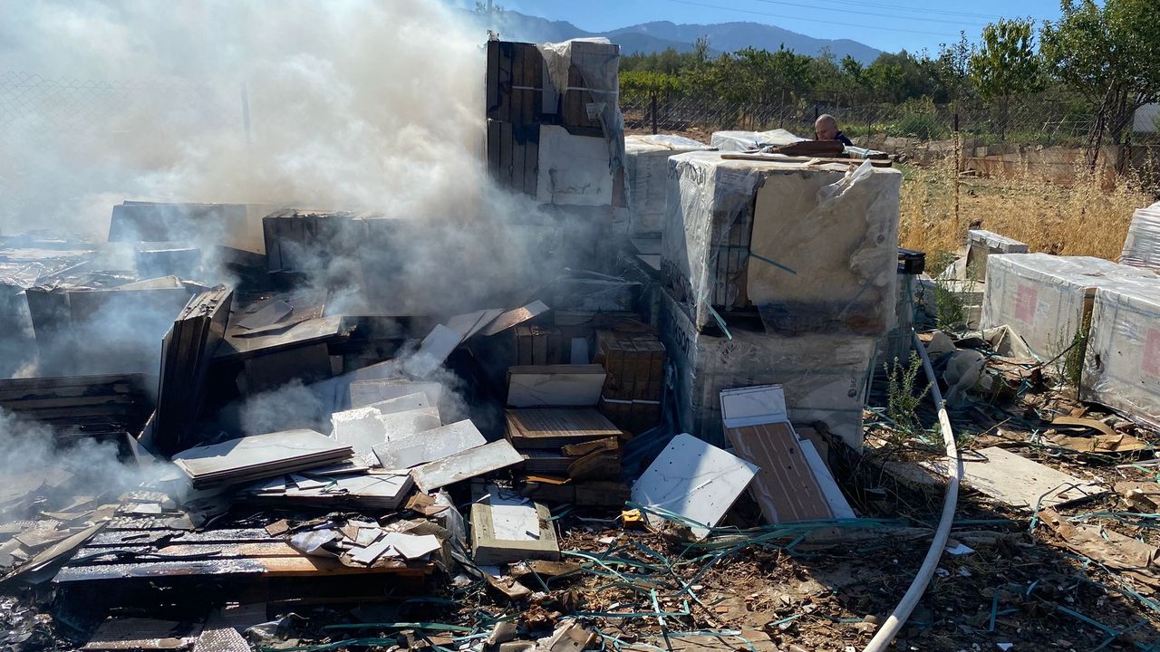 Deponun etrafı açık kısmında bulunan fayans ürünlerinin olduğu bölümde dumanlar yükseldi. Yoldan geçenlerin ekiplere haber vermesi üzerine yangın büyümeden söndürüldü. Fayansların içerisinde olduğu koliler ve bir miktar tahta palet yandı.