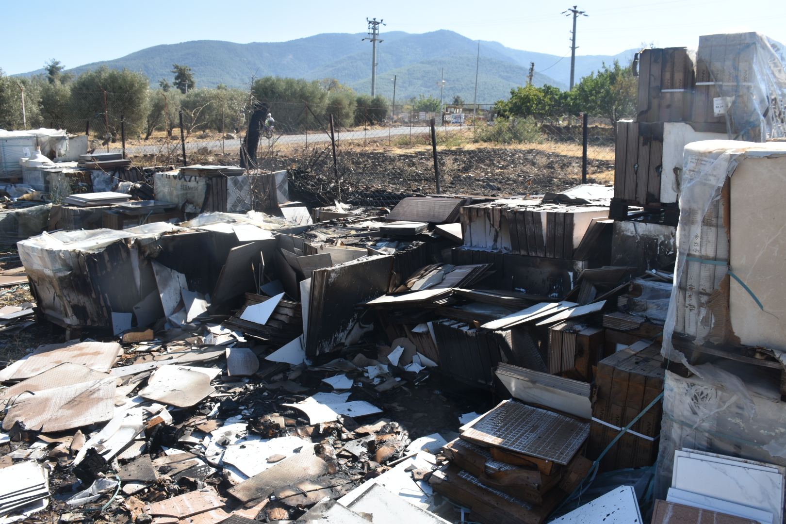 Aydın Büyükşehir Belediyesi ekiplerinin müdahalesiyle kısa sürede yayılmadan söndürülen yangının ardından bir süre soğutma çalışması yapıldı.