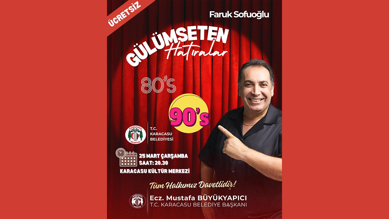 Özellikle "Seksenler" dizisindeki Kasap Bahtiyar karakteriyle gönüllere taht kuran usta oyuncu Faruk Sofuoğlu, 25 Mart Çarşamba günü akşam saat 20.30'da Kültür Merkezinde ücretsiz olarak sahnelenecek bu özel gösteride toplumsal hafızada yer eden eski alışkanlıkları, komşuluk ilişkilerini ve o dönemin saf eğlence anlayışını sahneye taşıyor. Gösteri, sadece bir tiyatro oyunu değil; aynı zamanda interaktif anlatılar ve dönemin ruhunu yansıtan sürpriz performanslarla harmanlanmış bir "nostalji şovu" niteliği taşıyor.