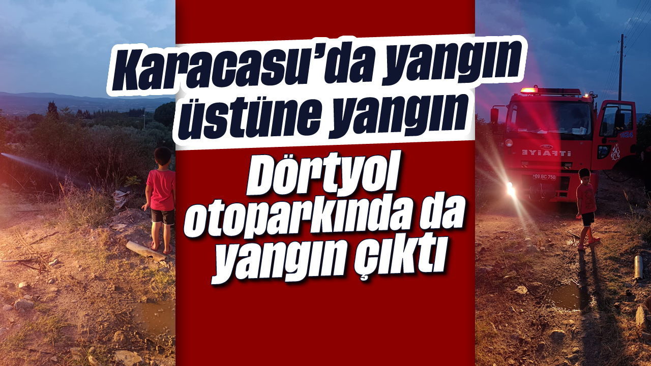 Ekipler buradaki yangını söndürürken kısa bir süre sonra Geyre Mahallesi Dörtyol Mevkinde otopark yakınında bulunan otluk alandan yangın ihbarı geldi.