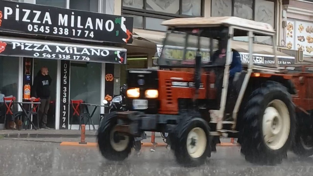 Öğleden sonra aniden kararan gökyüzü, yerini şiddetli yağmura bıraktı. Hazırlıksız yakalanan vatandaşlar saçak altlarına sığınırken, yollar kısa sürede suyla kaplandı. Araçlar göle dönen yollarda ilerlemekte güçlük çekerken, ilçenin simge noktalarında yağmurun sesi yankılandı.